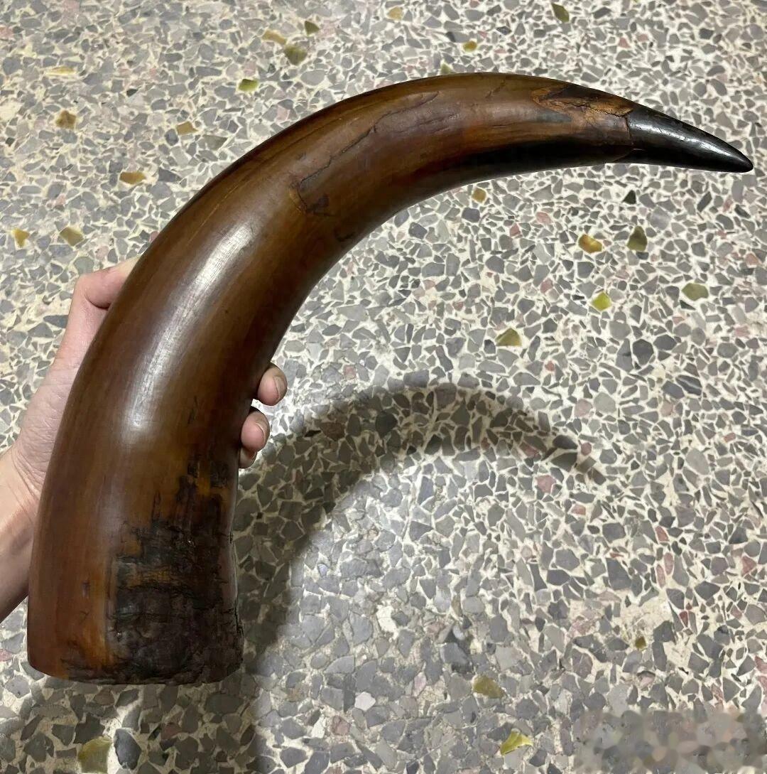 当时的东南亚很湿热,活跃着各种大型凶兽,据说有一种凶猛的大野牛,体型似犀,健硕无比,两角弯曲似长蛇。所以它还有说法叫蛇颠角,谐音射天角。如今已经灭绝,民间藏品也是十分稀少。