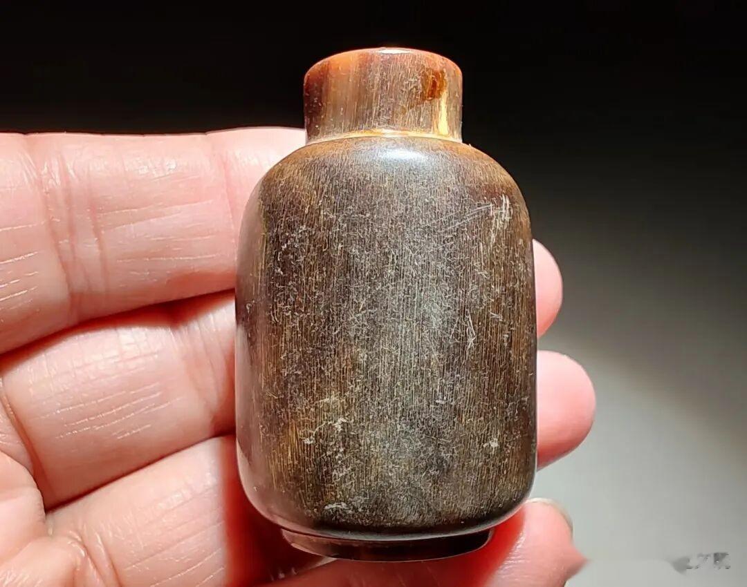 真品的射天角形似镰刀,内有中空。颜色上,它通常是蜜蜡黄到棕褐色,年代越久颜色越深,而且四周边缘因为氧化会更深点,内部中空变化比较不明显。你拿手里掂量会感觉沉,密度挺大的,放盐水里能下沉。闻起来有点淡淡的咸腥味,特别是用热水一烫,味道会更明显。