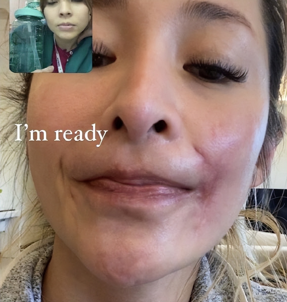 其实她的脸变成这样,有很大一部分原因是因为那场意外,她的脸被宠物狗咬伤去医院缝针,男友也受了伤。