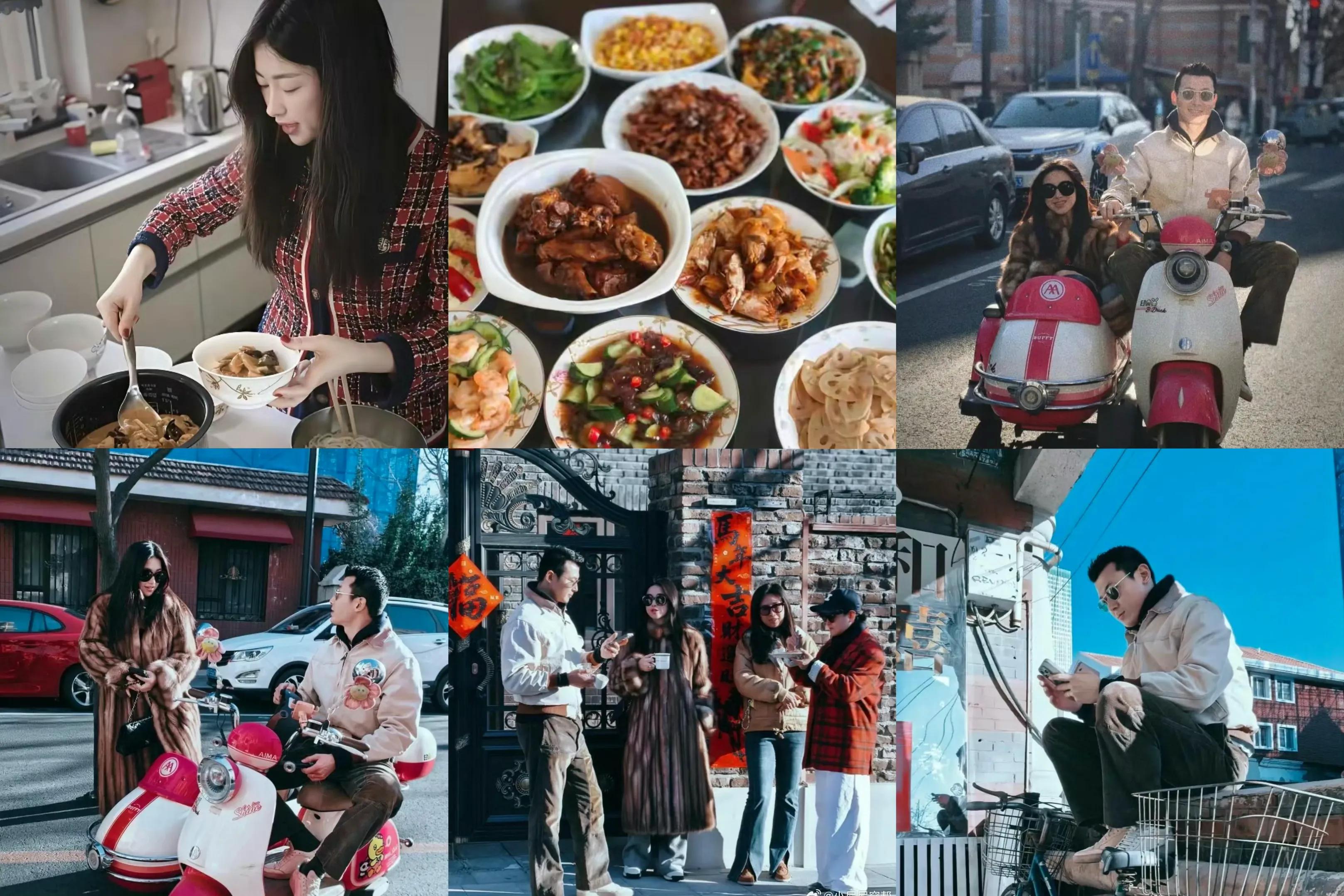 朱珠没一点名媛包袱,穿着几十块的T恤骑电动车逛天津胡同,春节回婆家坐电动三轮车啃萝卜,公婆疼她像亲女儿。每次回去都做满满一桌菜。
