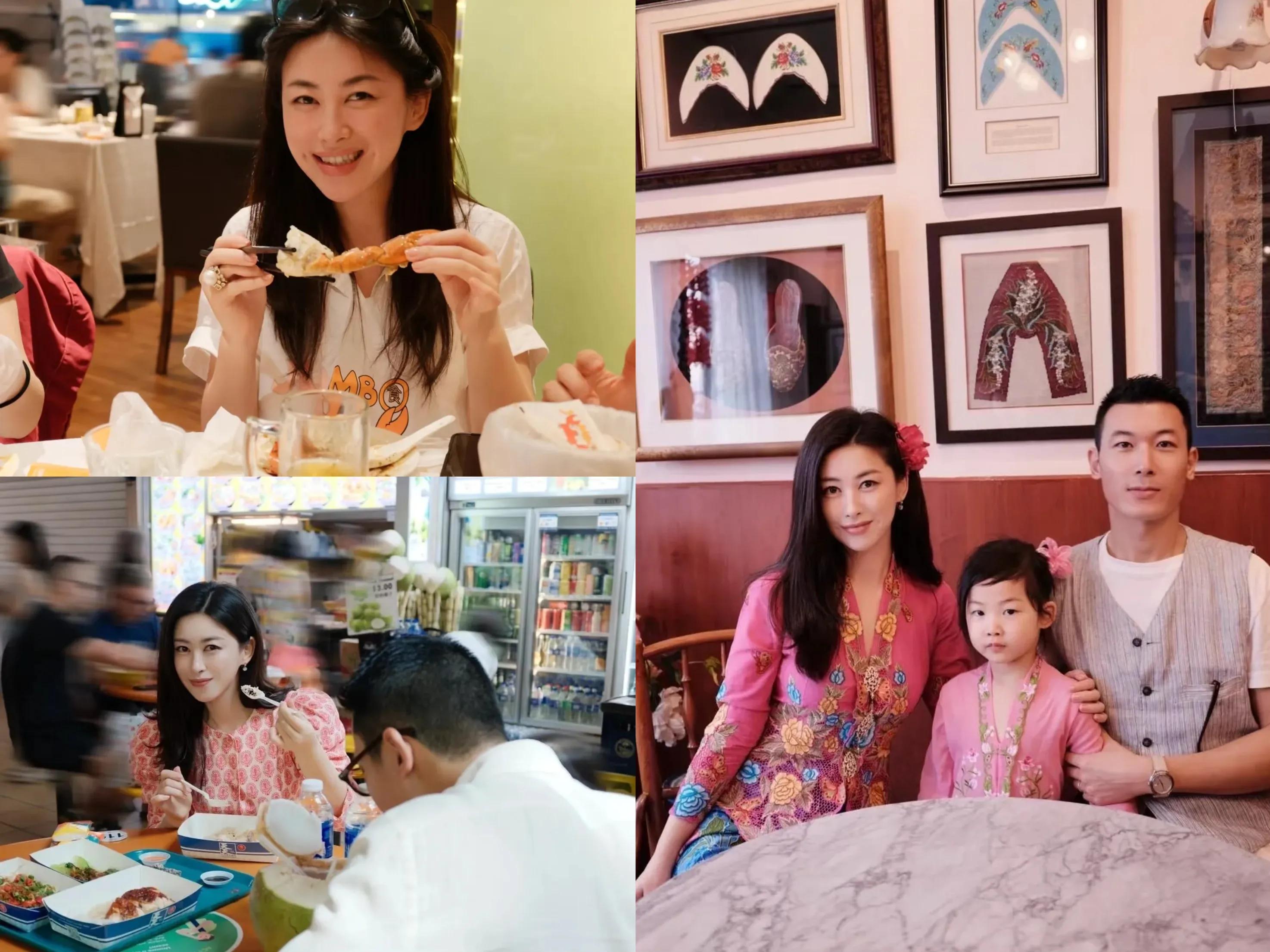 三人去新加坡度假,王昀佳帮拆螃蟹,女儿穿娘惹服拍照,画面温馨。