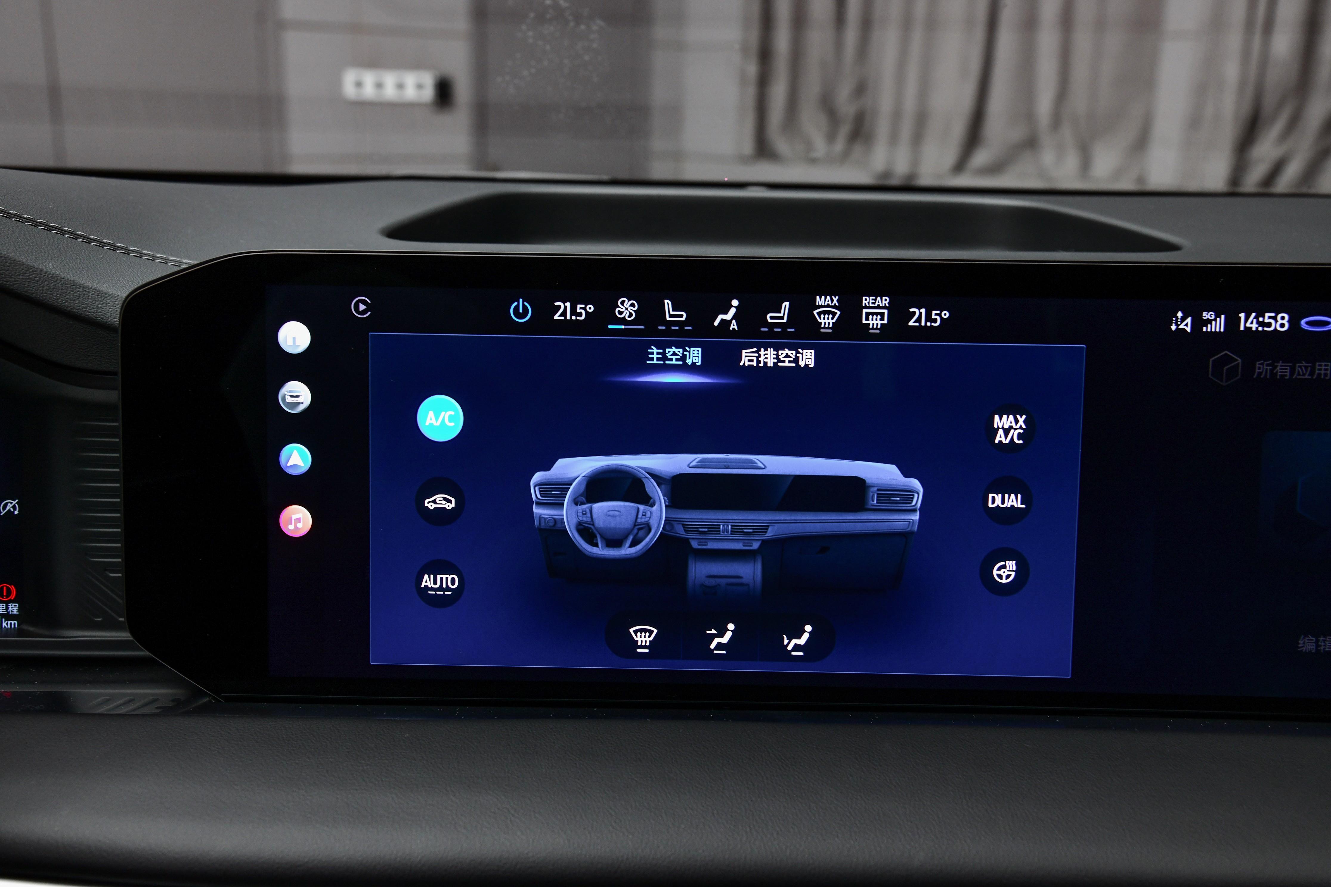内饰方面,两款车型的配置基本一致,皮质方向盘手感不错,支持上下 + 前后调节,能轻松找到舒适的驾驶姿势。12.3 英寸的全液晶仪表显示清晰,车辆的各项信息一目了然。中控区域是一块 27 英寸的大屏,分辨率达到 4032x756,显示效果细腻,搭配百度地图导航,路况信息和路线规划都很直观。车机系统搭载的是 SYNC 系统,内置高通骁龙 8155 芯片,操作起来很流畅,没有明显的卡顿感。语音控制功能反应迅速,支持主副驾驶分区唤醒,像调节空调温度、切换音乐、导航等操作,通过语音指令就能完成,开车的时候用着很方便。