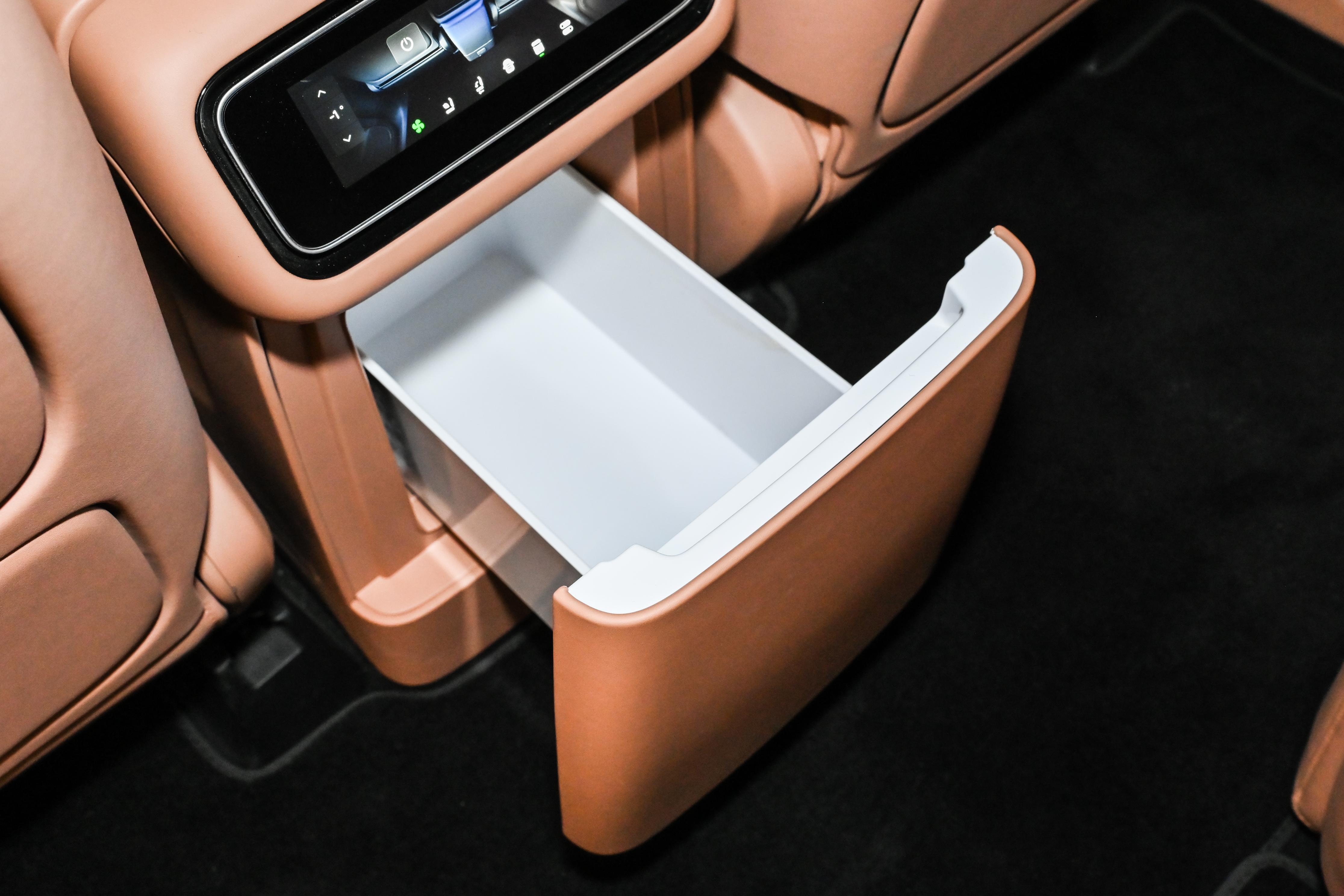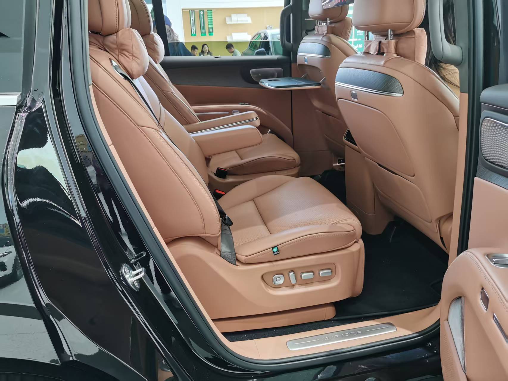 车内还有高压氧舱,打开这个功能,车内会快速过滤甲醛、PM2.5,同时提升氧气浓度,平时长时间开车、坐车,不会觉得闷、不会头晕犯困,要是以后自驾去高原,这个功能简直是神器,全程都能保持头脑清醒,健康舒适性直接拉满。其他舒适配置也一点不含糊:前排座椅电动调节、加热、通风、按摩全都有,腰靠、腿托都能调,开车久坐也不累;第二排右侧的零重力航空座椅,坐姿可以躺平,按摩、通风加热也都配齐,坐上去非常舒服;中间通道宽达195mm,进出第三排特别轻松,还带双折叠小桌板,家用、商务都合适。第三排也不含糊,靠背能131°无级调节,还带扶手和加热,成年人坐进去也不憋屈。车内还有车载冷暖冰箱,夏天放冷饮、冬天放热水,多区独立空调、无级氛围灯、香氛系统、高品质音响,该有的配置全都给配齐了,每一项都是高端享受。