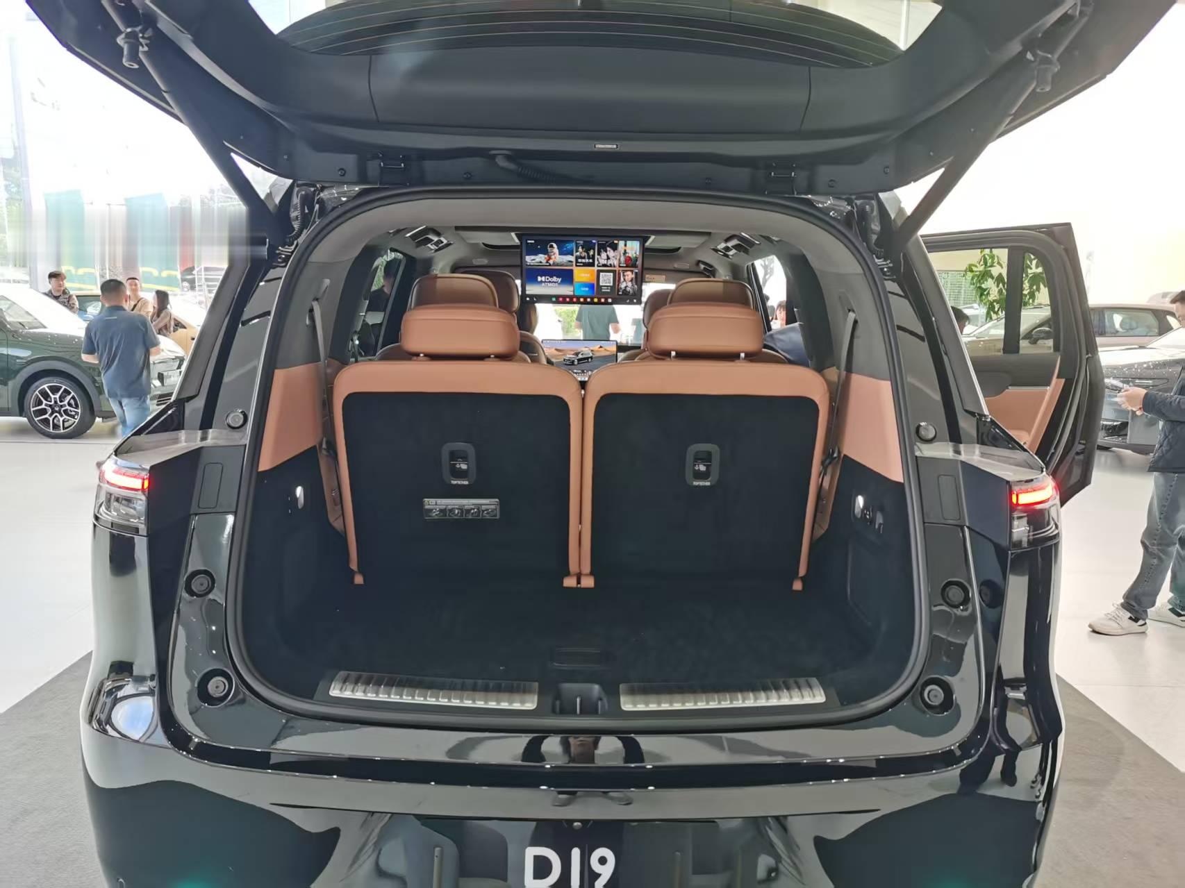 后备箱空间也很实用,后备箱与45L前备舱,可轻松容纳4个28英寸行李箱,兼顾家用与商务需求。要是拉大件,把第三排座椅放倒,后备箱空间直接翻倍,婴儿车、露营装备、行李箱全都能放下,日常家用、周末出游、逢年过节走亲访友,空间完全够用。