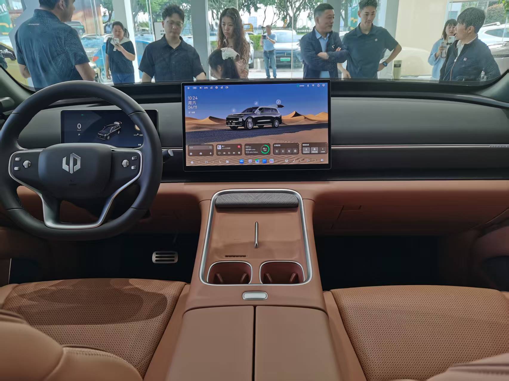 方向盘是Nappa真皮还带加热,电子怀挡设计简洁顺手;车内是多屏联动设计,10.25英寸全液晶仪表、17.3英寸高清中控屏、60英寸AR-HUD抬头显示,还有21.4英寸3K后排娱乐屏加6英寸后排控制屏,屏幕清晰度特别高,触控的时候反应很灵敏,没有延迟。而这套车机的核心,就是双高通8797旗舰芯片,这可是现在车 规 级的芯片,一般都是40万以上的车才会用,零跑直接给装了两颗,算力直接拉满。我试了一下,开导航、放音乐、连蓝牙、操控车内功能,同时运行好几个功能,切换起来一点不卡顿,车机流畅度拉满。