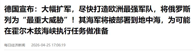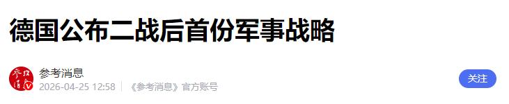 事情发生在4月25日,德国正式推出二战结束以来第一份完整的国家军事战略。文件名字看着挺正经,但内容堪称“颠覆级”——目标很直白:打造欧洲最能打的常规军队,重新站到欧洲安全的最核心位置。