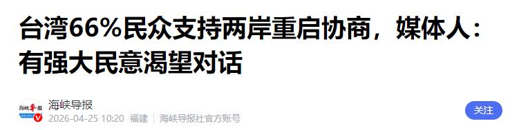 这次民调给出的信号再清楚不过:交流的大门一旦重新打开,就再也关不上了;和平的民心一旦凝聚,任何分裂势力都挡不住。