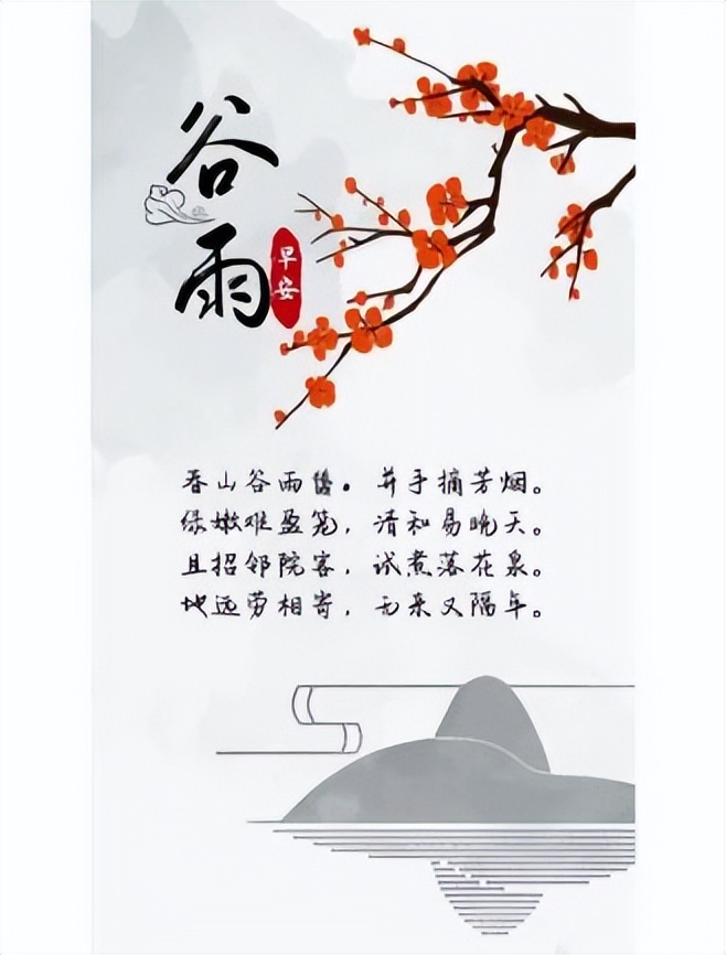 谷雨诗意浓厚,多咏暮春与农事。这里举几例欣赏一下。