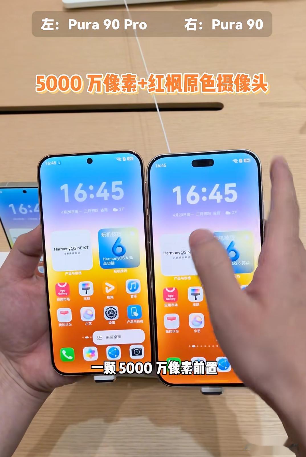更离谱的是Pura90居然还前置双挖孔(多了一个红枫镜头,并不是3D人脸),换句话说,这手机不仅背面臭,正面也是双挖孔丑到哭。甚至对比Pura80,其主摄也缩水了。