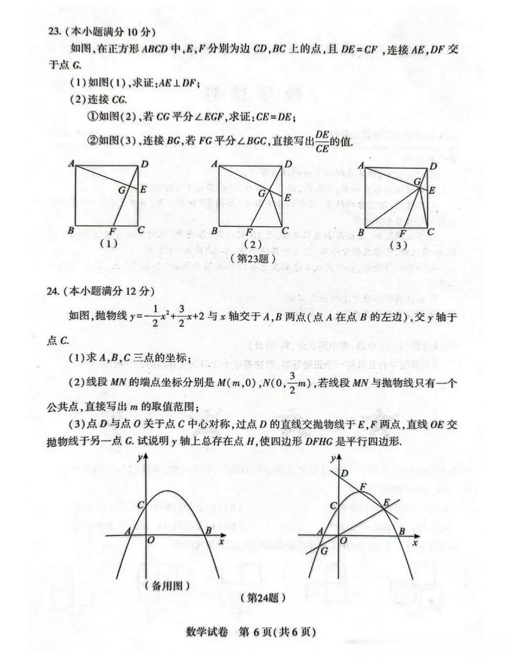 真正的“大魔王”是第24题抛物线:求A、B、C坐标→线段MN与抛物线只有一个公共点求m范围→点D与O关于C对称,证明y轴上总有H使DFHG是平行四边形。三问层层递进,第三问直接让考生“放弃挣扎”。老师分析:“这题考的是抛物线对称性、直线与抛物线交点、平行四边形存在性,是中考压轴题的‘标准模板’,平时练透这类题,中考才能不慌!”