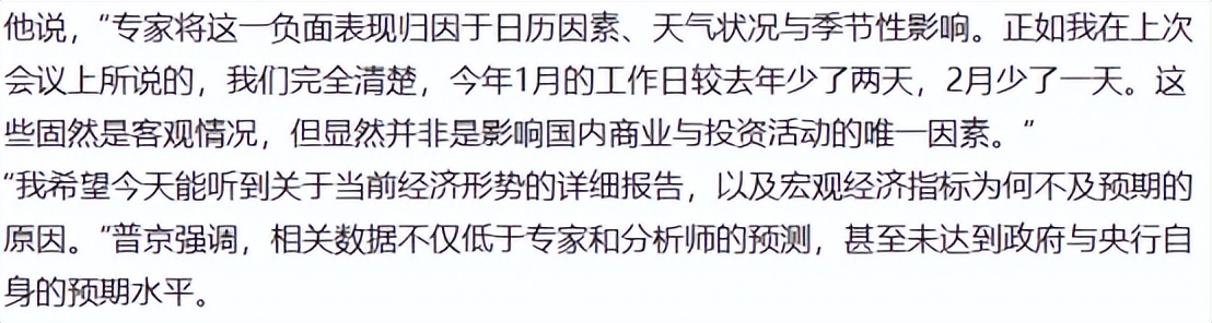 这个理由并未被普京认可,他认定这些客观因素存在影响,但绝不是经济下滑的唯一因素,也就不能成为借口,并希望能通过报表了解俄罗斯当前真实的经济情况,为什么宏观经济指标比预期差,要的不是这些敷衍借口。