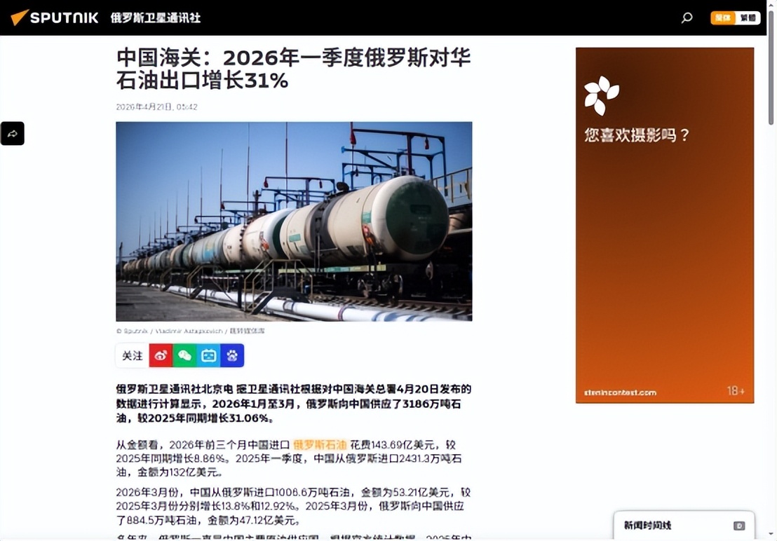 俄罗斯卫星通讯社2026-4-16逆势飙升14.8%:美国搅乱全球能源市场,中俄贸易何以强势反弹】