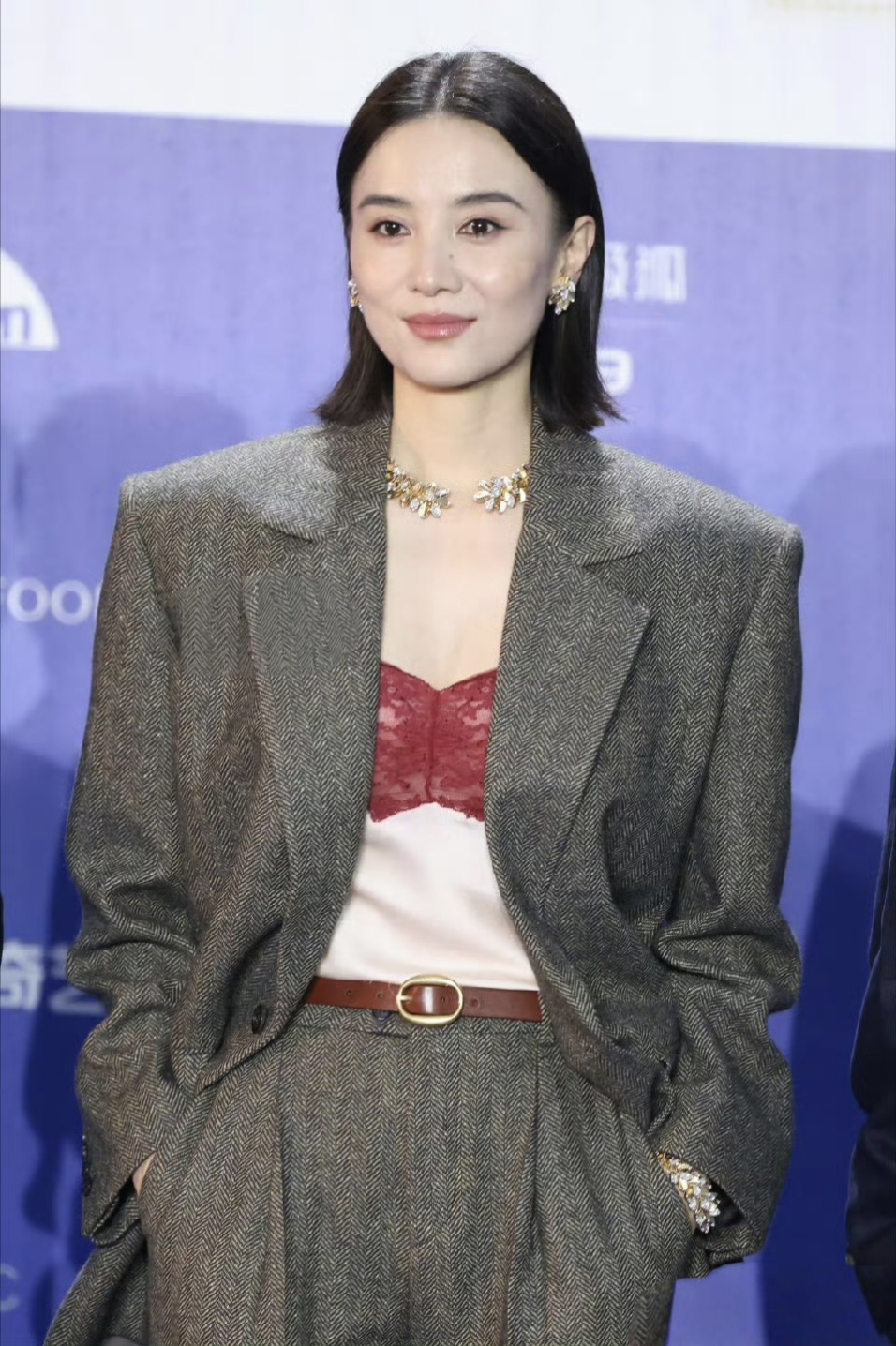 宋佳走随性大气路线,身着咖色西服套装,没有过多华丽装饰,松弛感拉满,岁月沉淀的气质碾压不少刻意扮靓的女星。