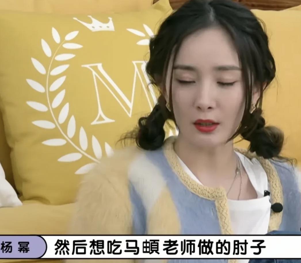 当他们聊到马頔时,杨幂提到如果有机会他来节目,请跟对方说她想吃马頔老师做的肘子了。毛不易和李雪琴还不懂这个梗,便询问其中原由,可大幂幂并没有直接戳破,反而说气氛到这儿刚刚好。