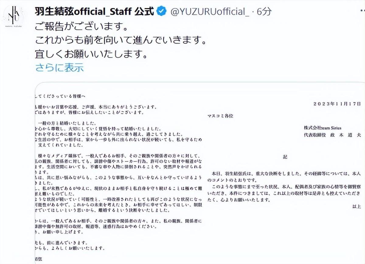 羽生结弦官宣离婚引爆热搜,网友怒斥没担当,女方疑似小提琴家