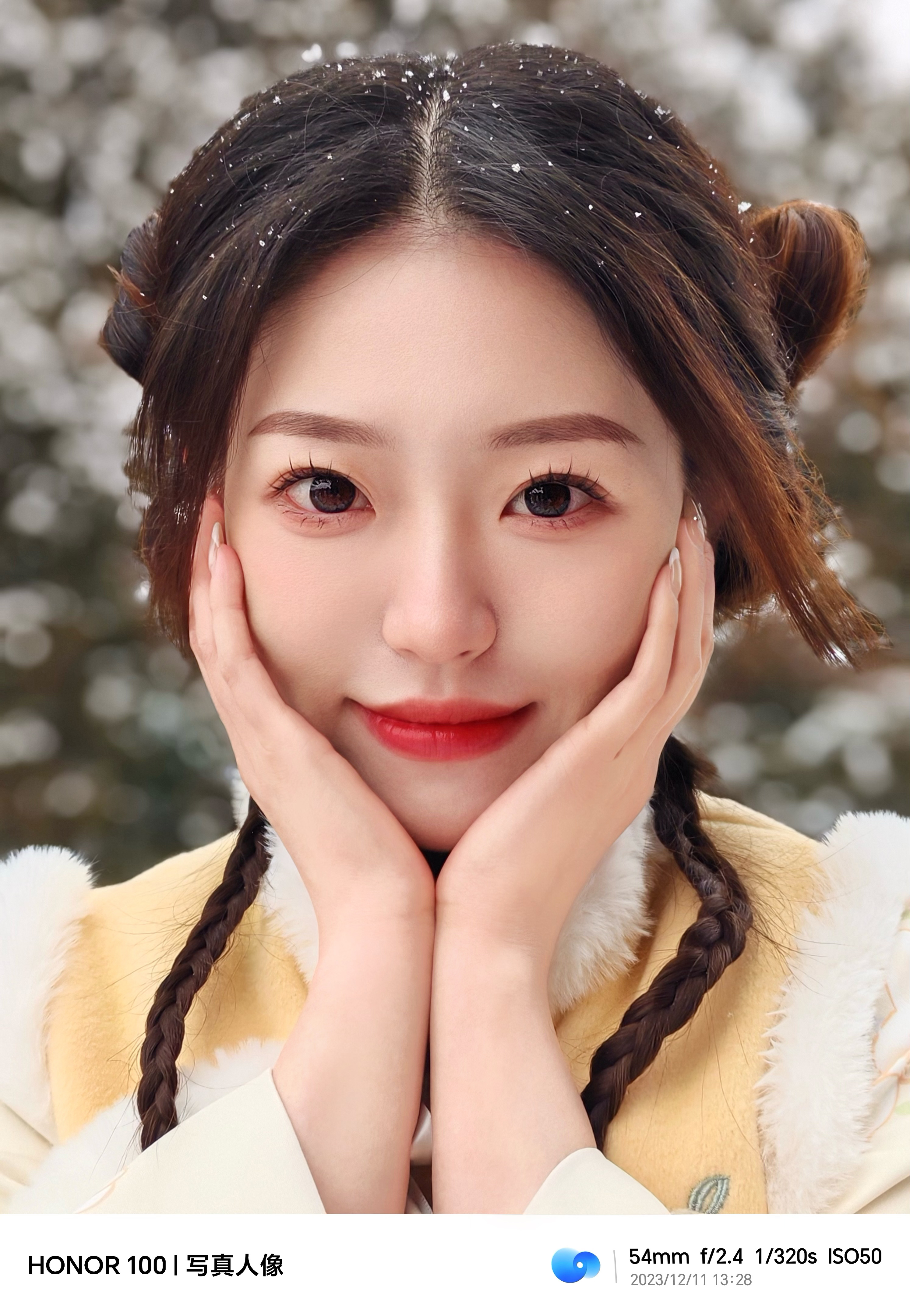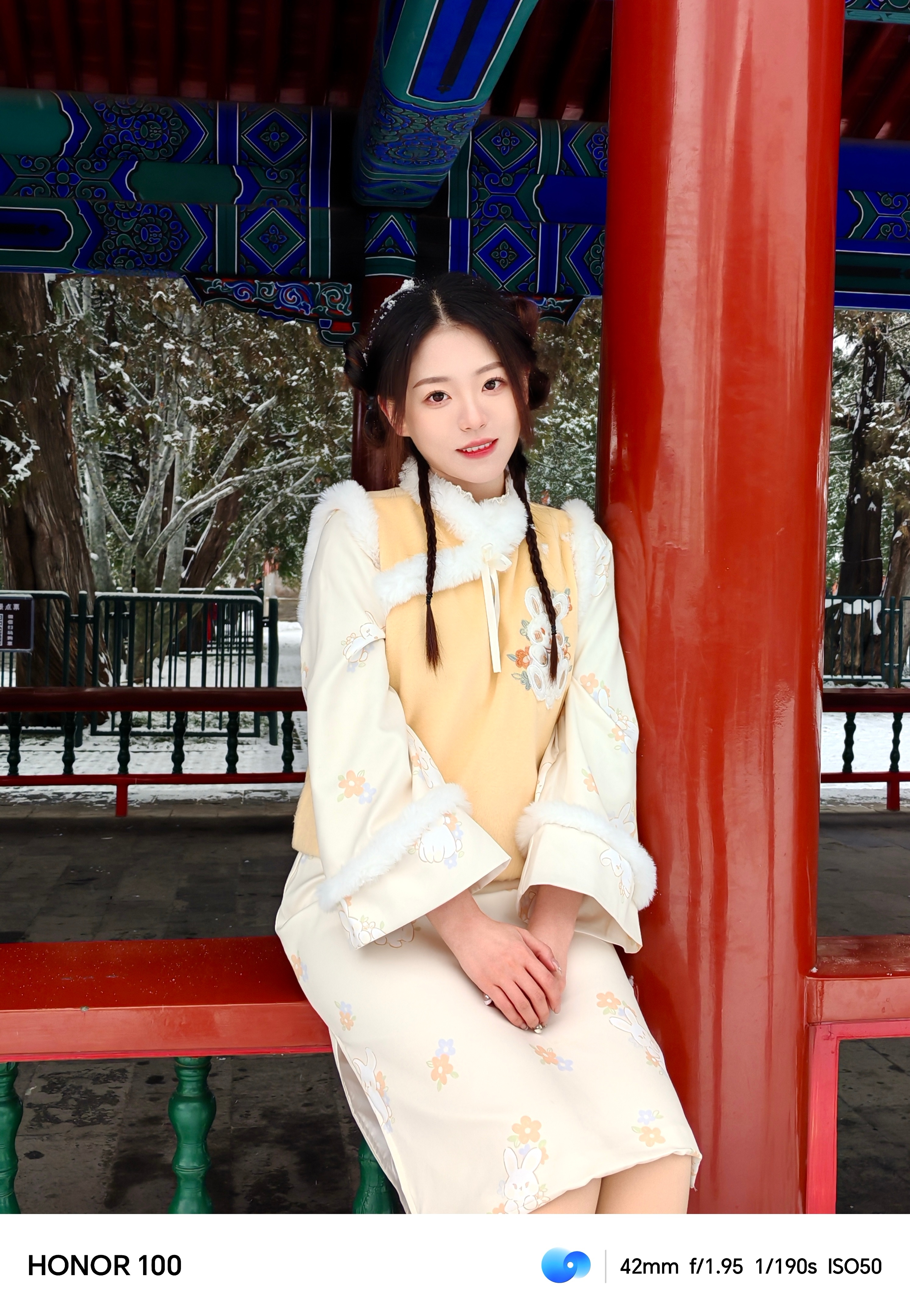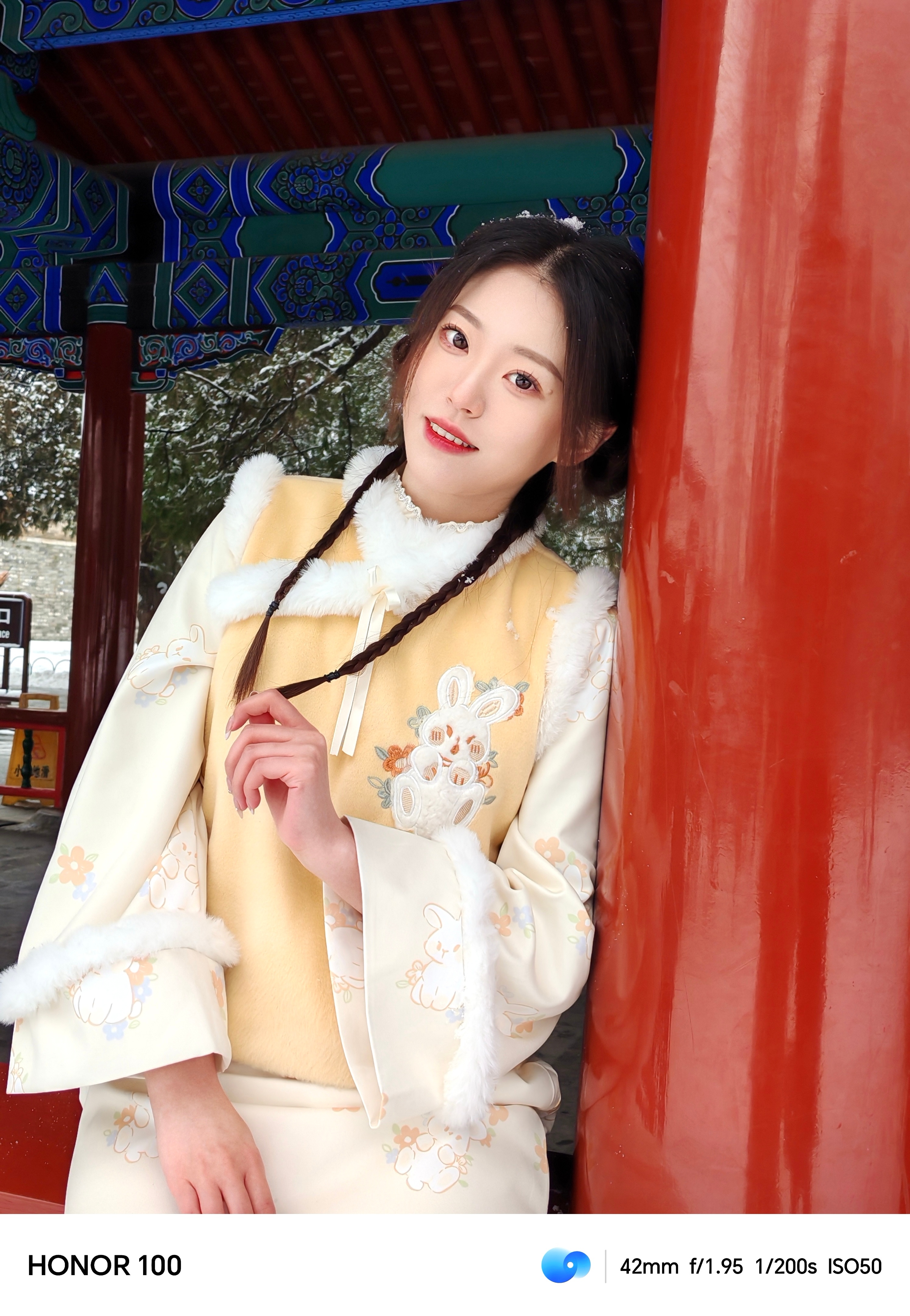 #北京的雪#来啦!这次好给面子,雪下得这么大,立刻拉上小伙伴拿着#荣耀100#去了天坛,下雪的天坛配上新中式真的好出片!不得不说新出的荣耀100真的太好用了,他的面部黄金比例算法和AI RAW算法搭配出来的图堪比单反质感,保证质感的同时还还原了美貌,真的很难不爱!大家可以试试看~