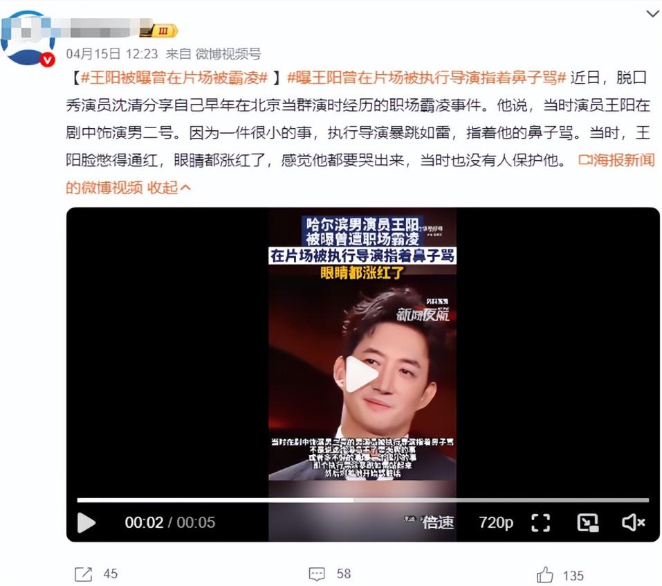 只不过当时的他只是一个跑龙套的,而王阳是当时那部剧的男二,只因为一件非常非常小的事情,剧组里的导演就对王阳破口大骂。