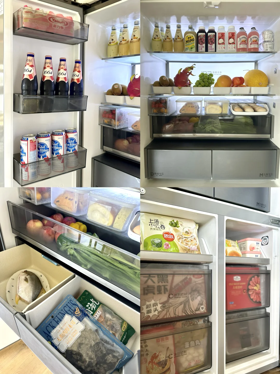 冰箱的容量很大,分区精细,不废吹灰之力就能把不同种类的食材打理得井井有条~