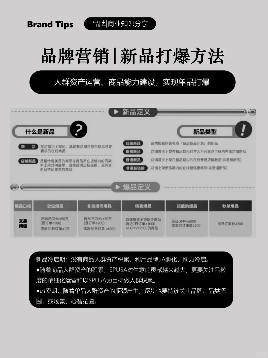❑ 成长监控、看全新品周期:当新品生命的进度条在不断前进,可能呈现不同的生意结构,这时候需要品牌能敏锐捕捉到细微的变化,及时进行战术调整。这套新品打爆方法论能实现对新品全生命周期的监控与指导,增加新品打爆的确定性。