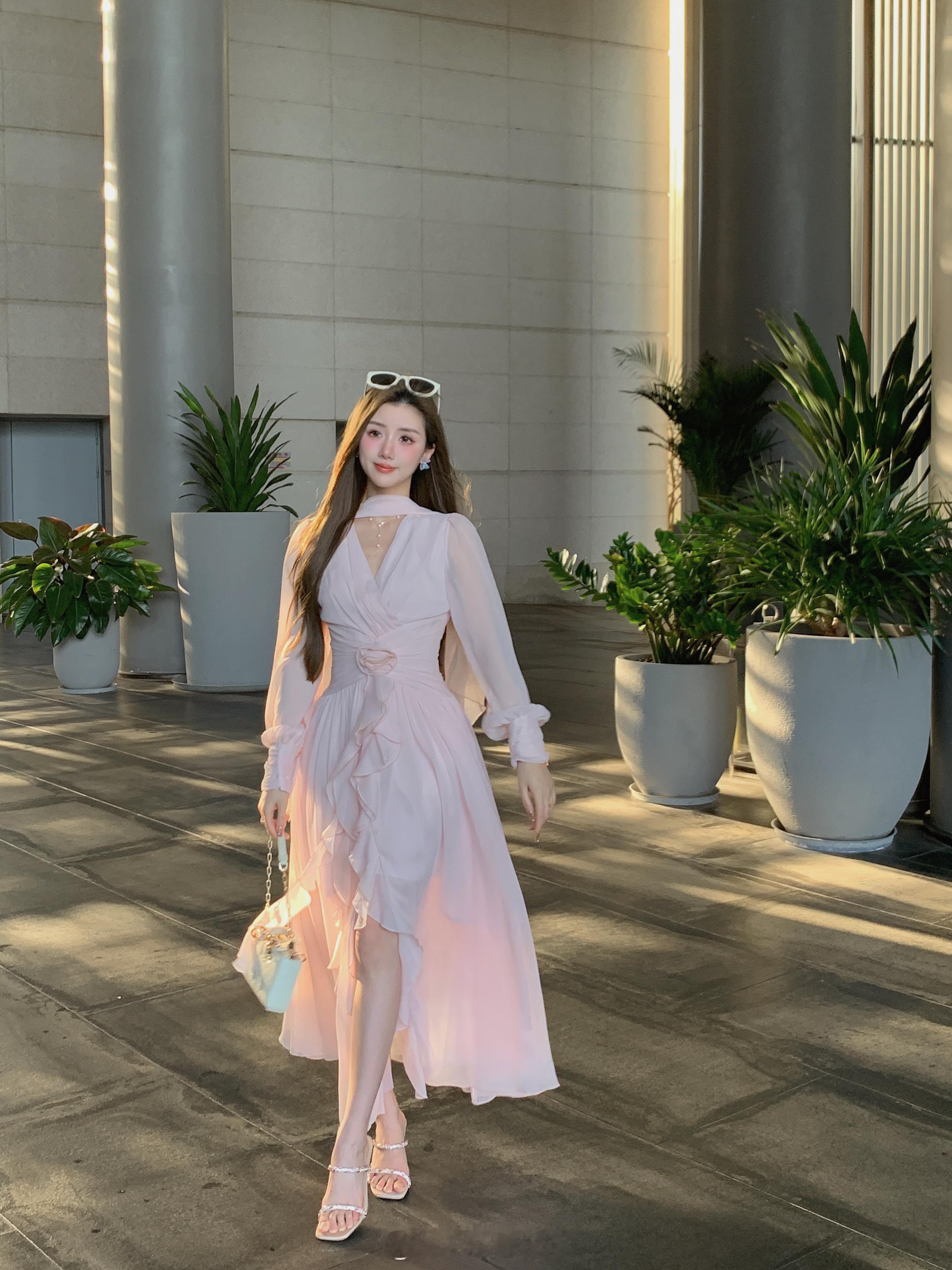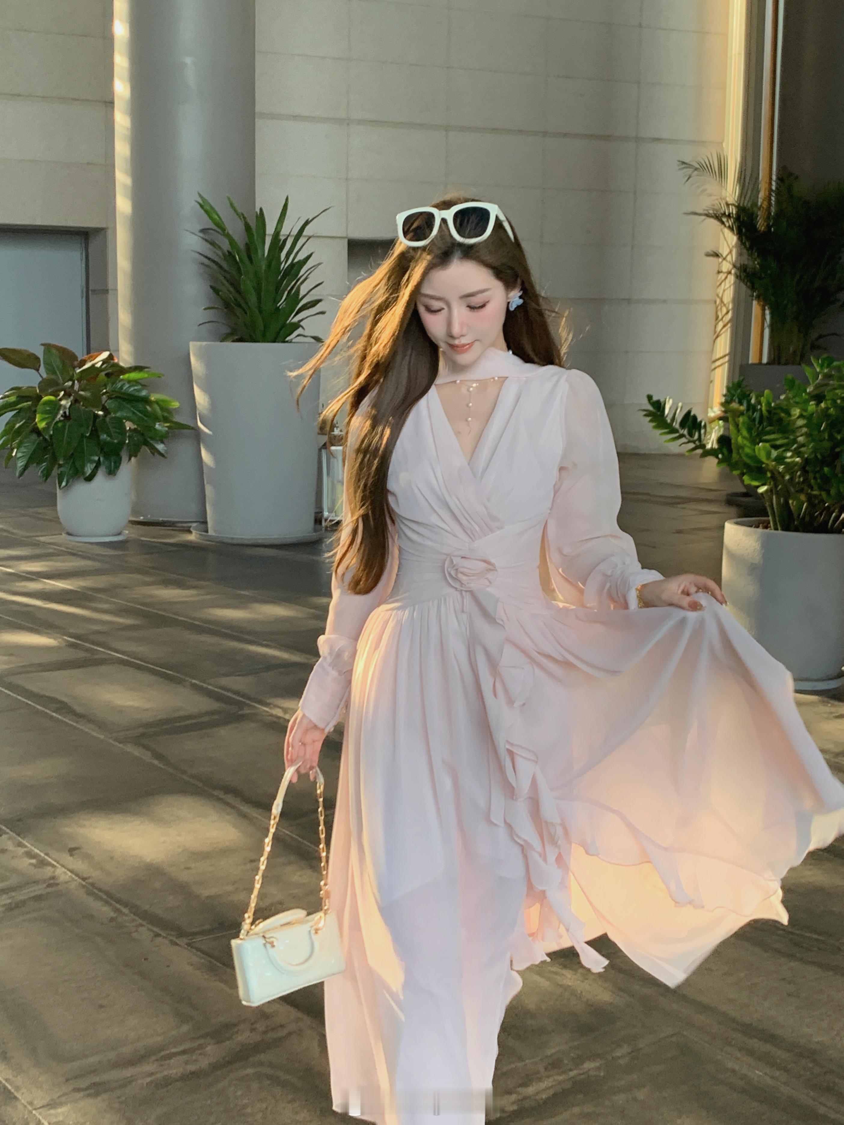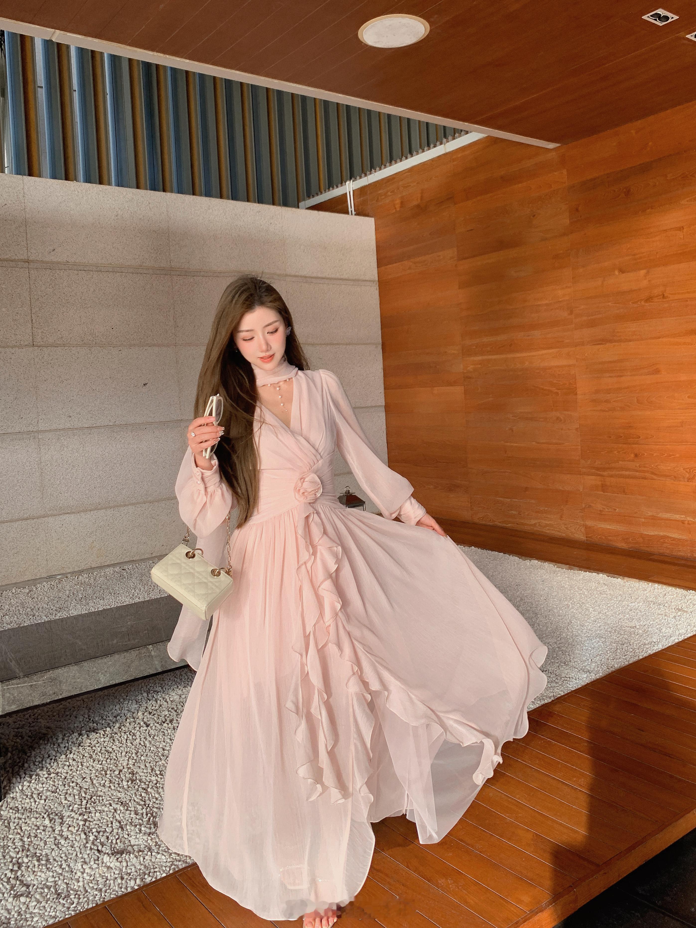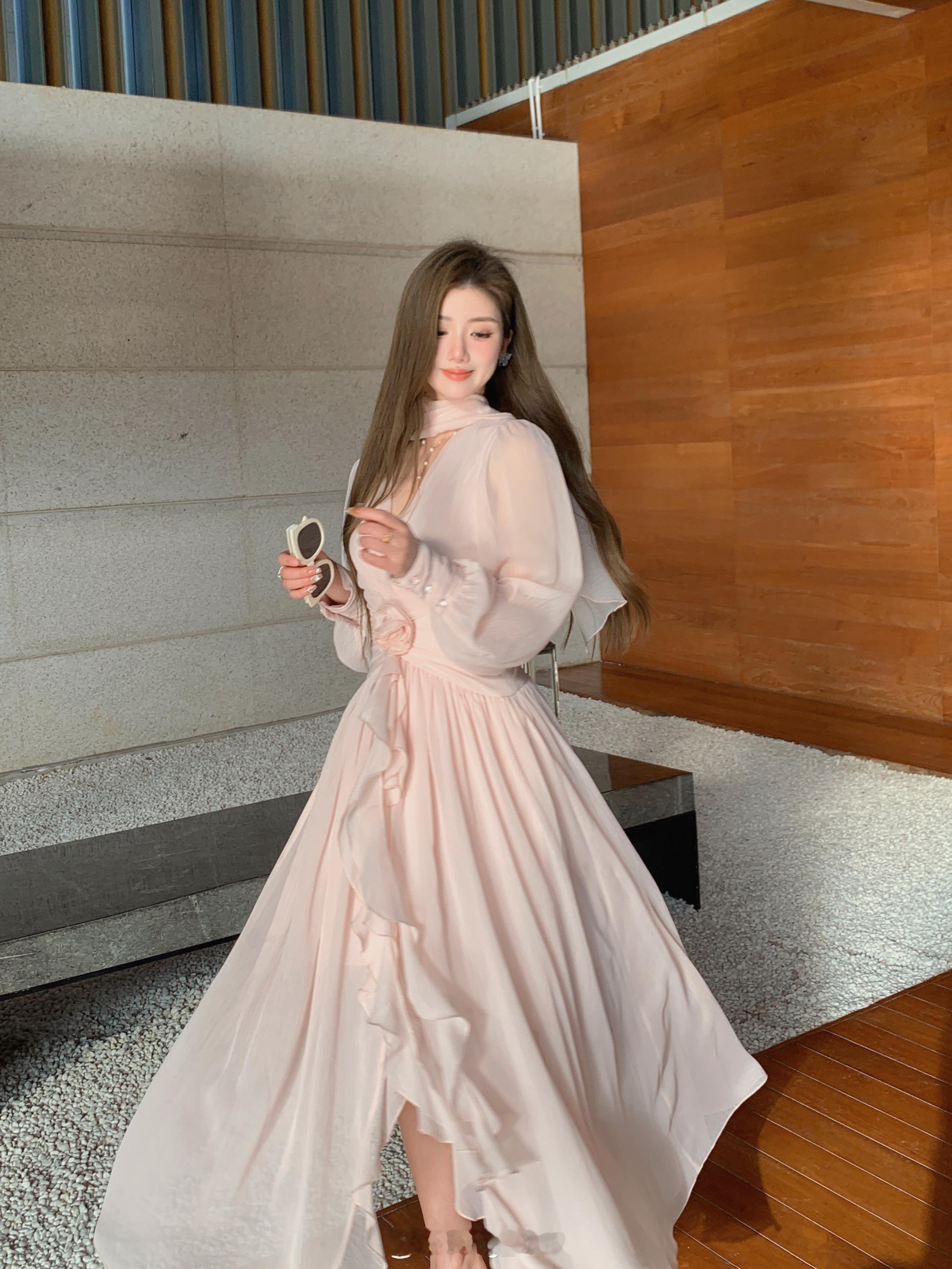 这个裙子简直是封神了[坏笑]版型无可挑剔显瘦仙气还不挑人颜色就是浅浅的肉雾粉不显