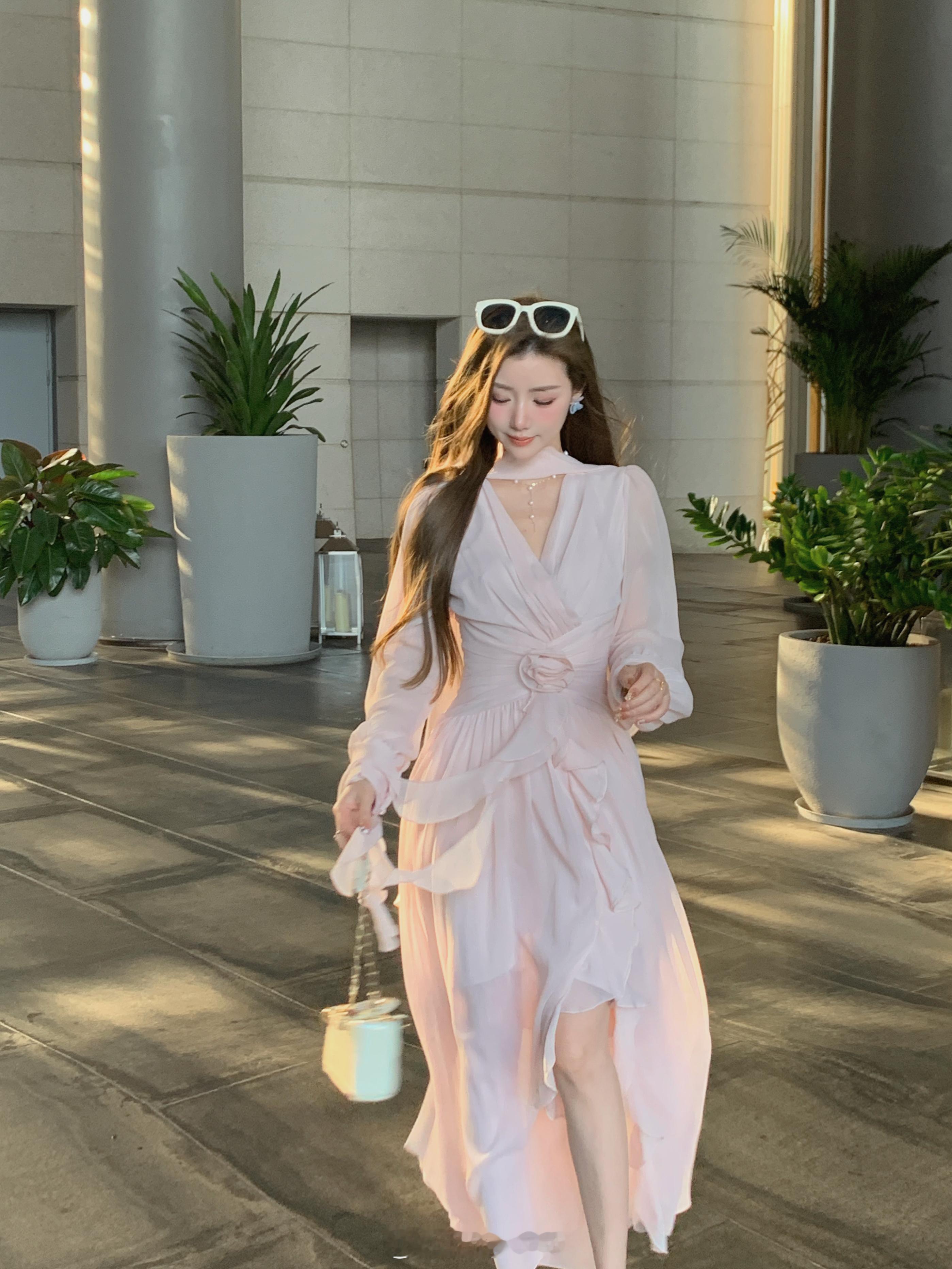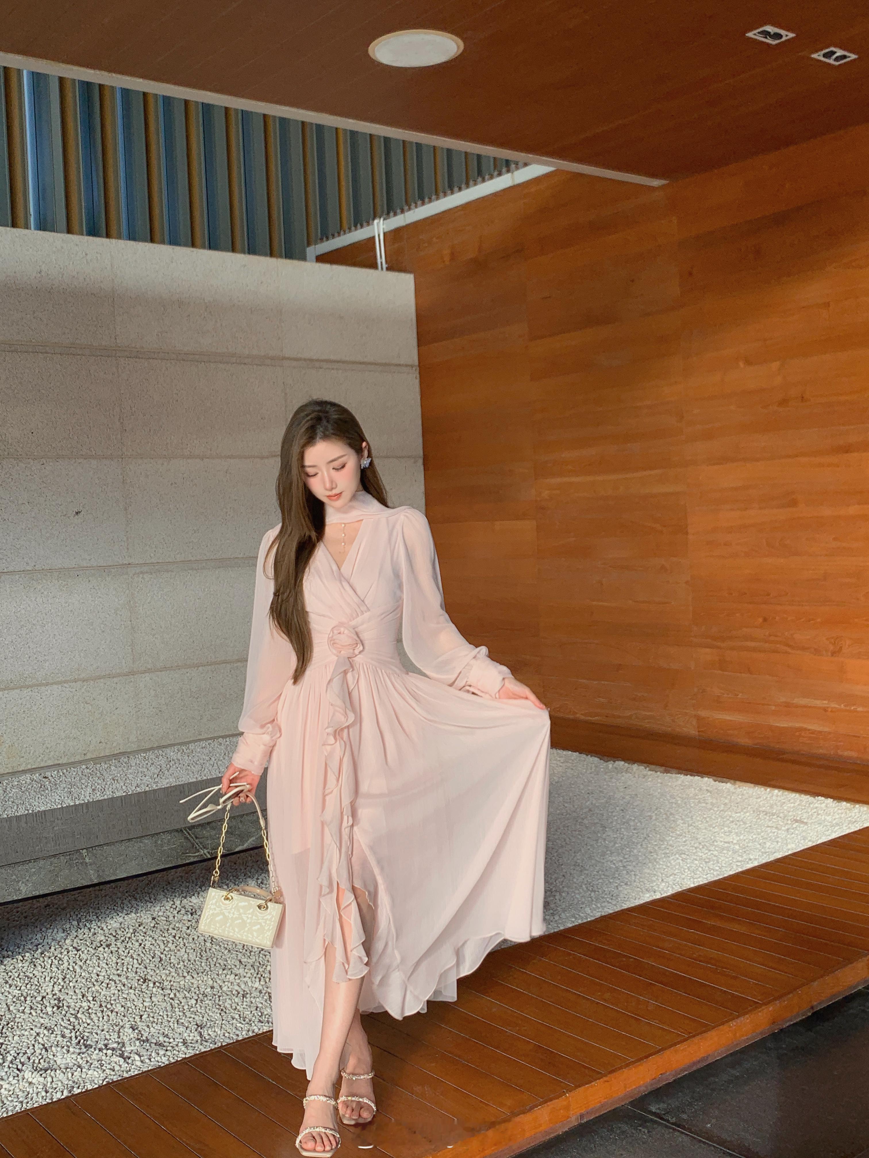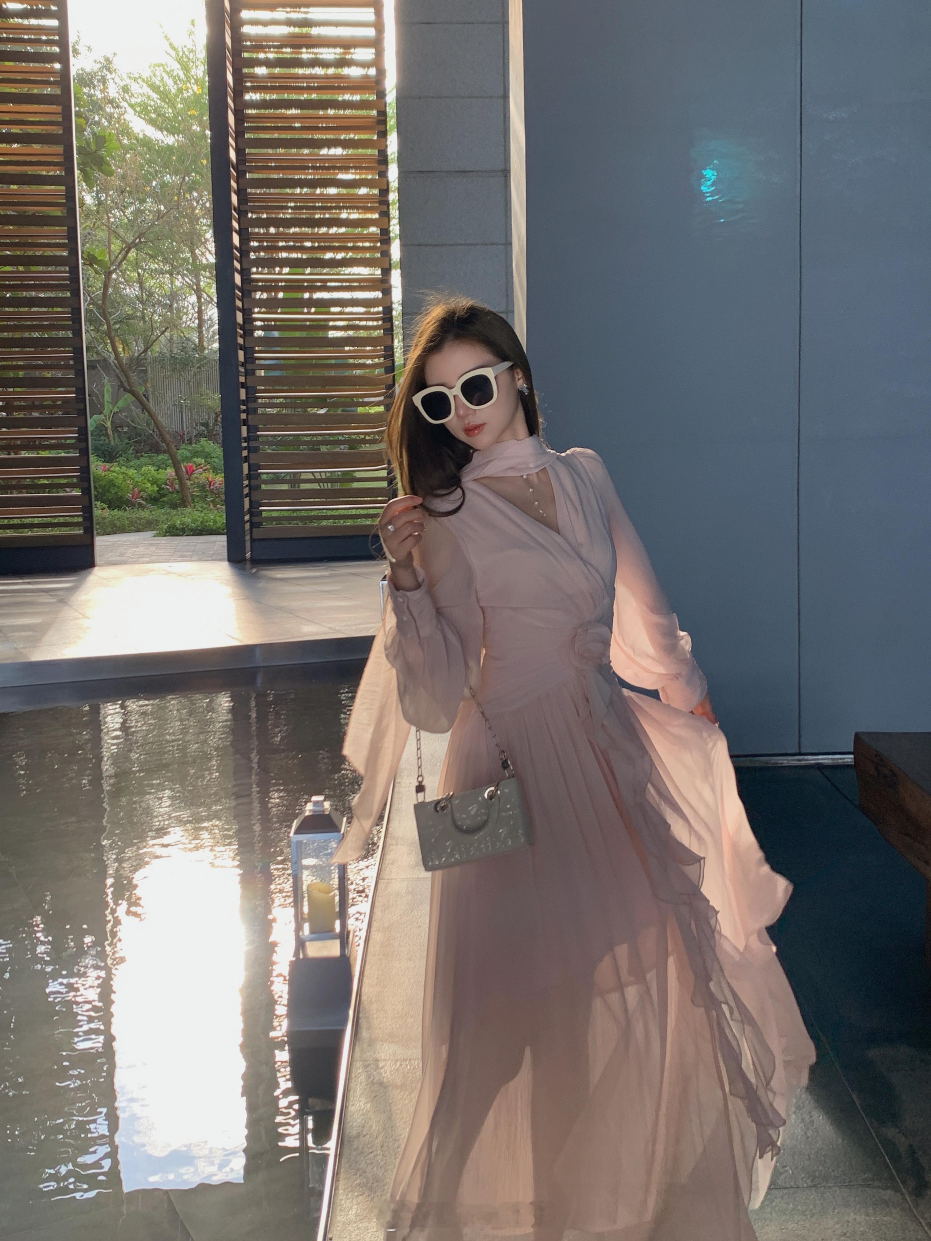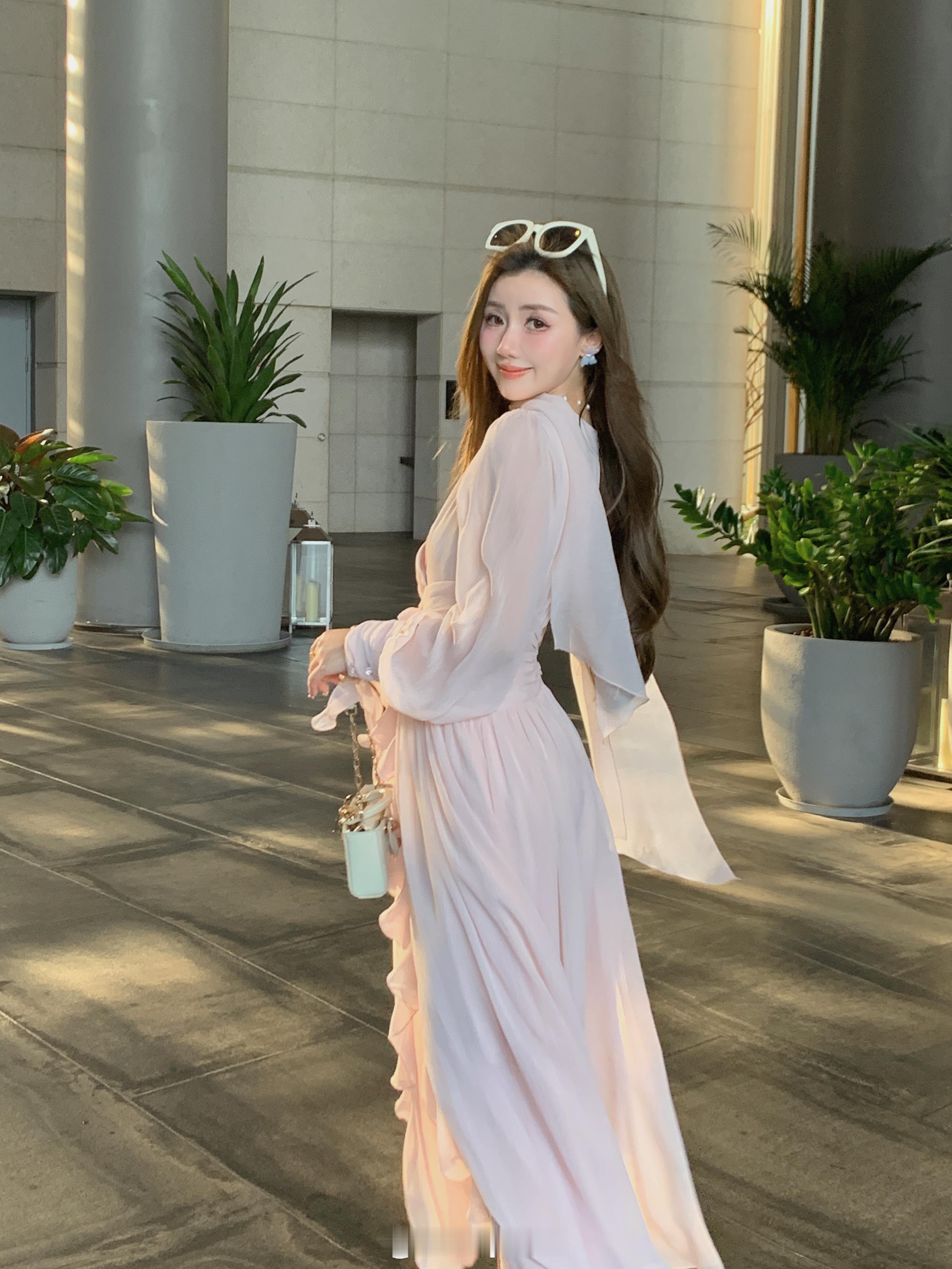 这个裙子简直是封神了[坏笑]版型无可挑剔显瘦仙气还不挑人颜色就是浅浅的肉雾粉不显
