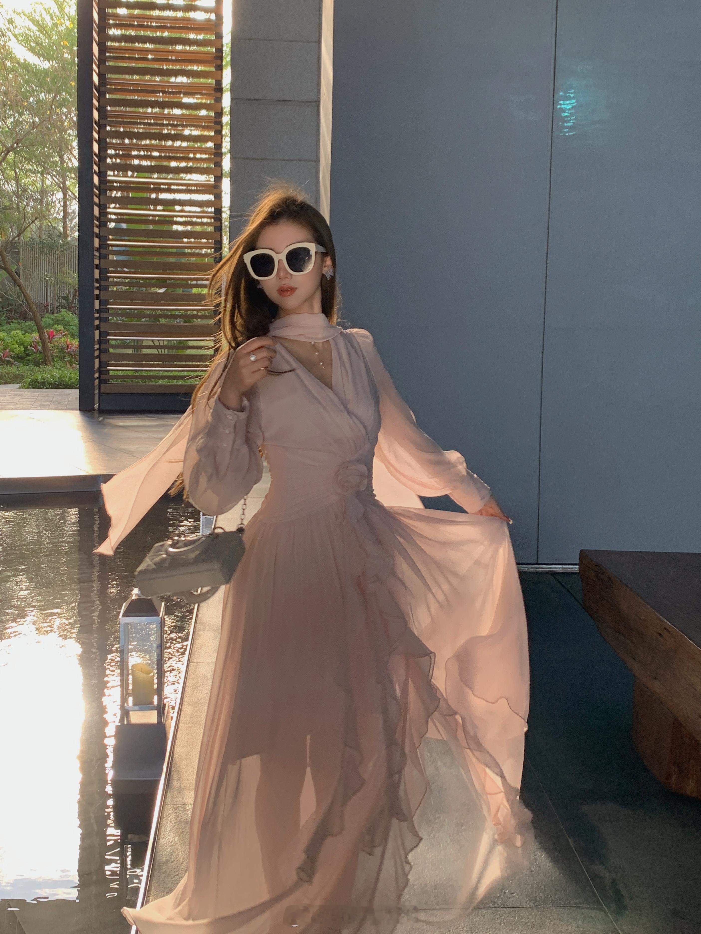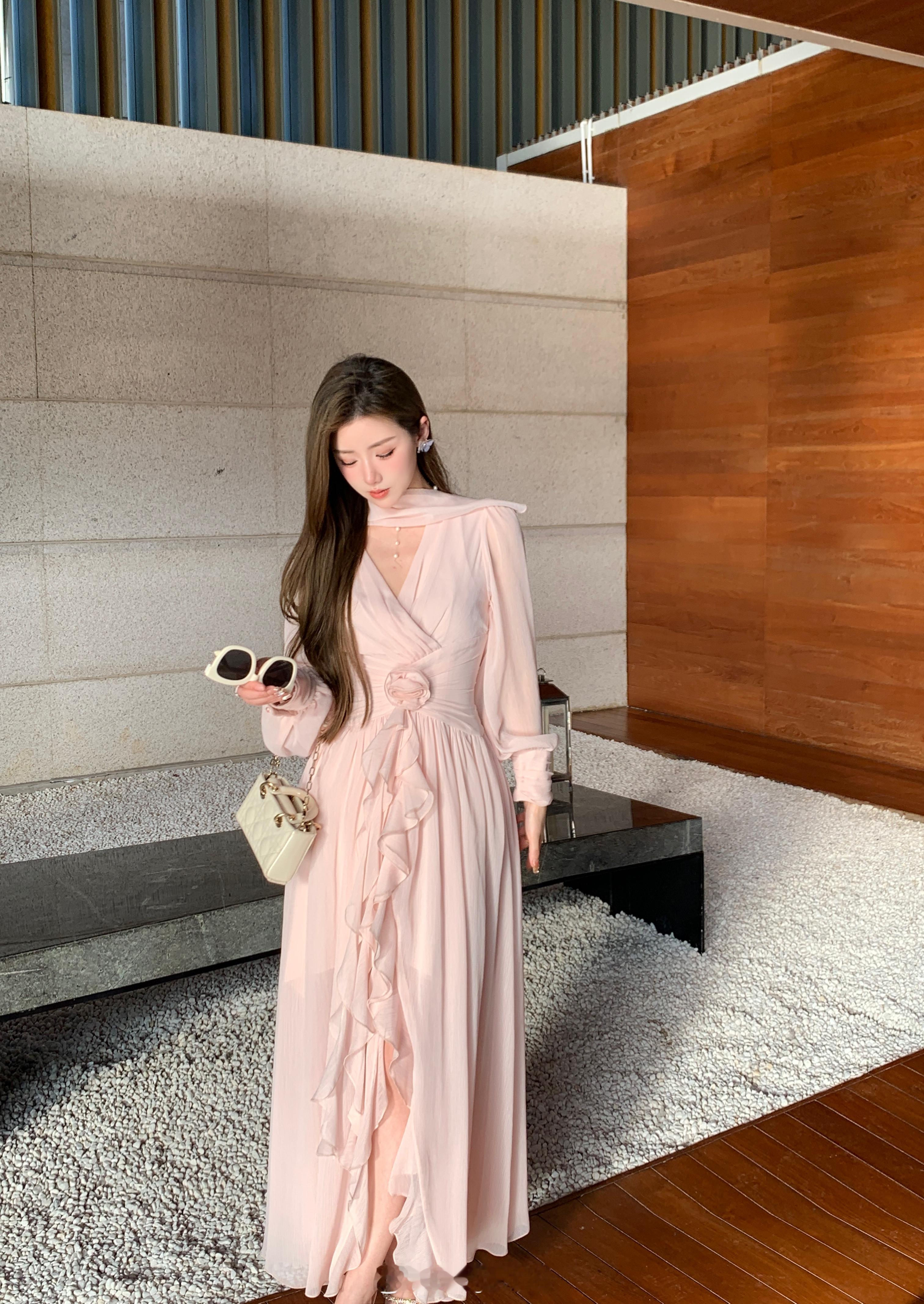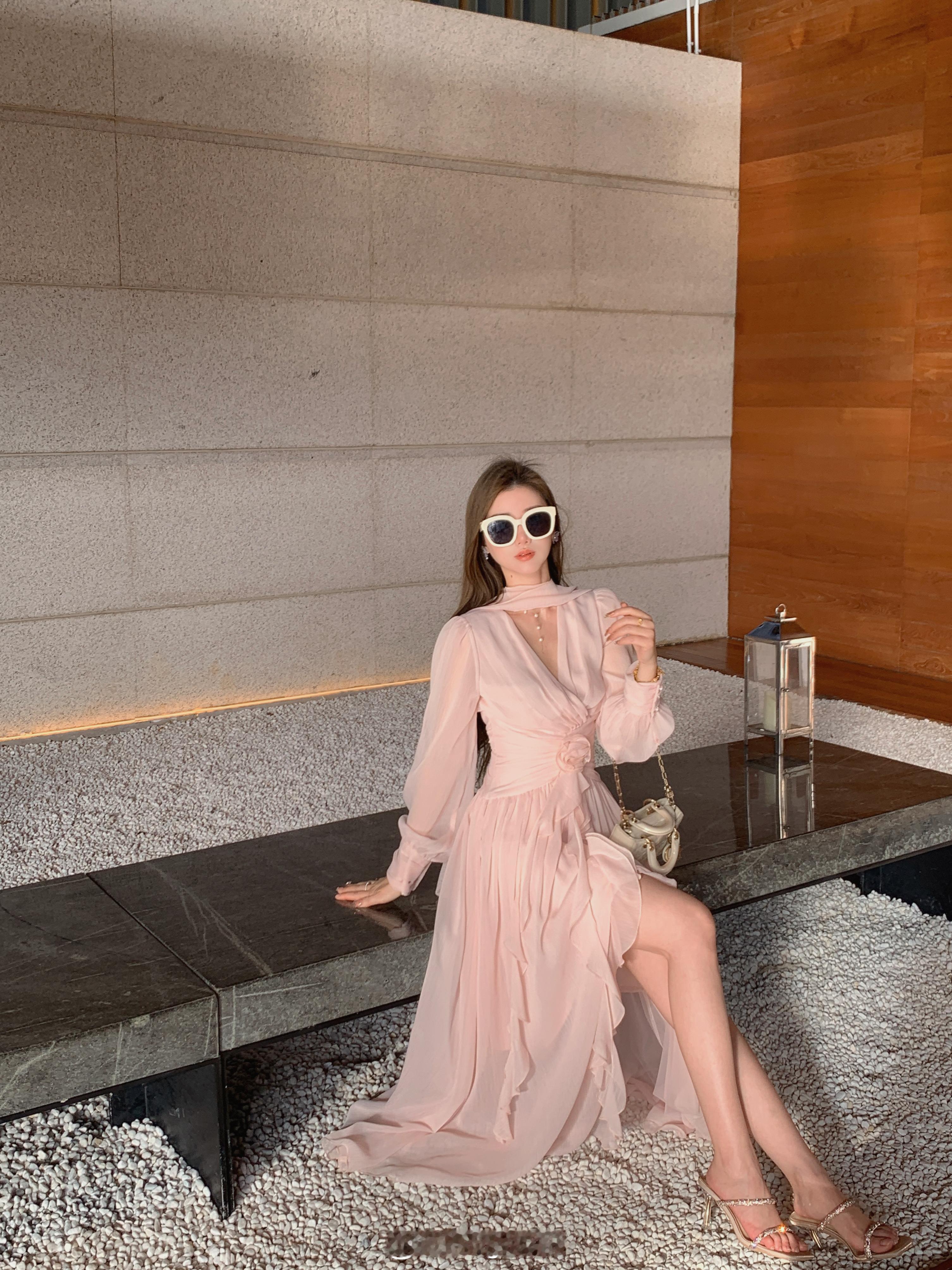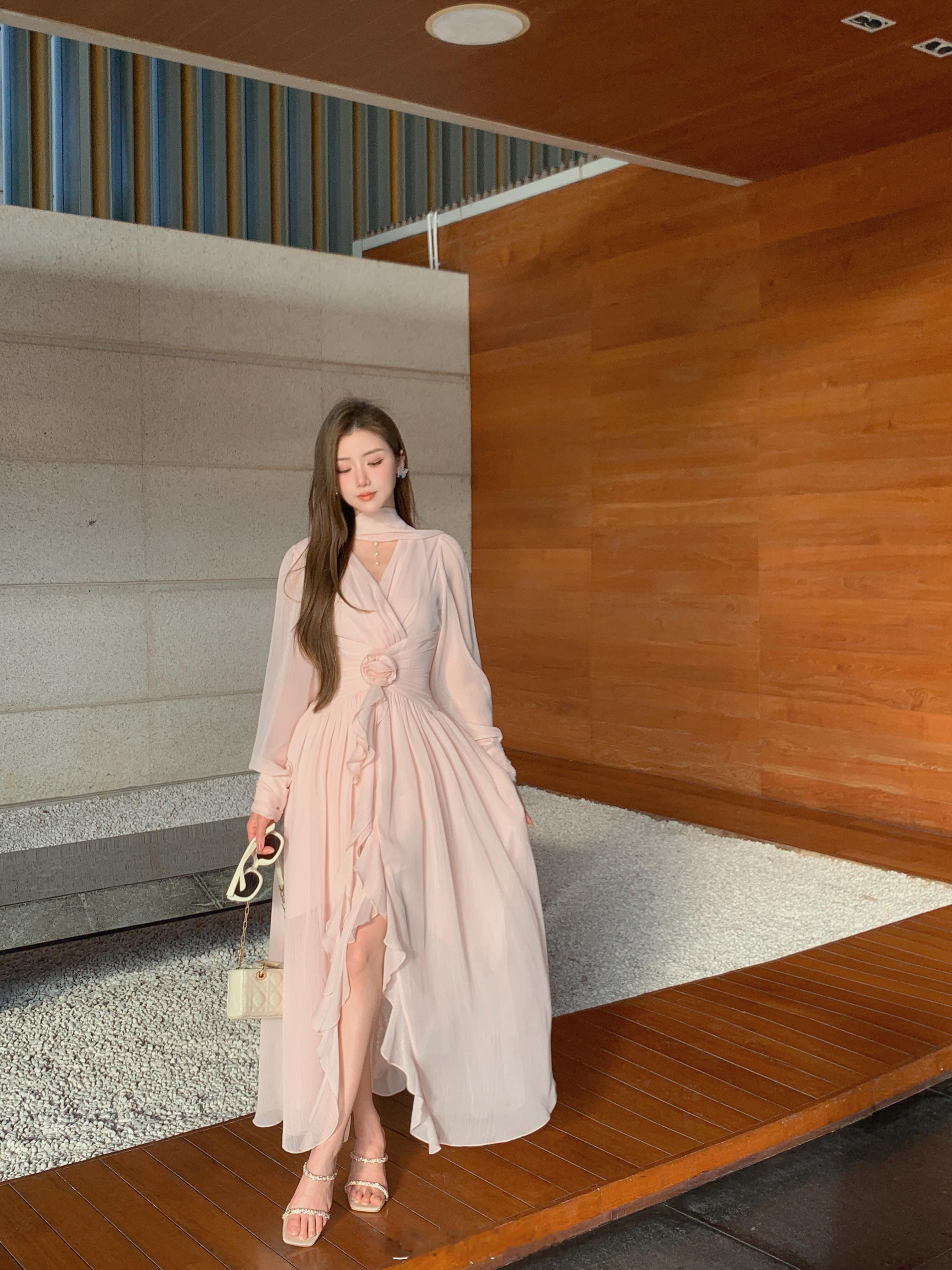 这个裙子简直是封神了[坏笑]版型无可挑剔显瘦仙气还不挑人颜色就是浅浅的肉雾粉不显