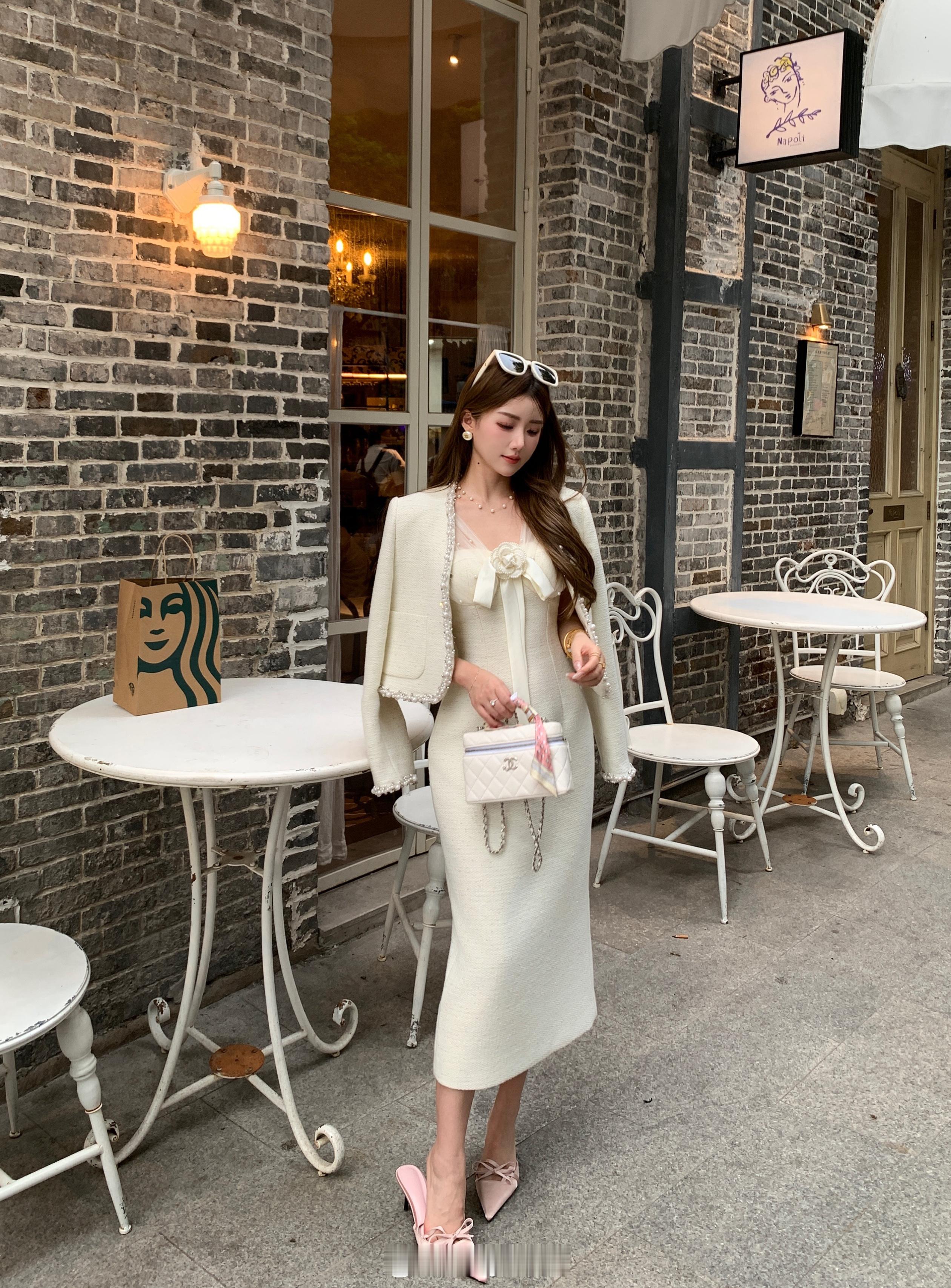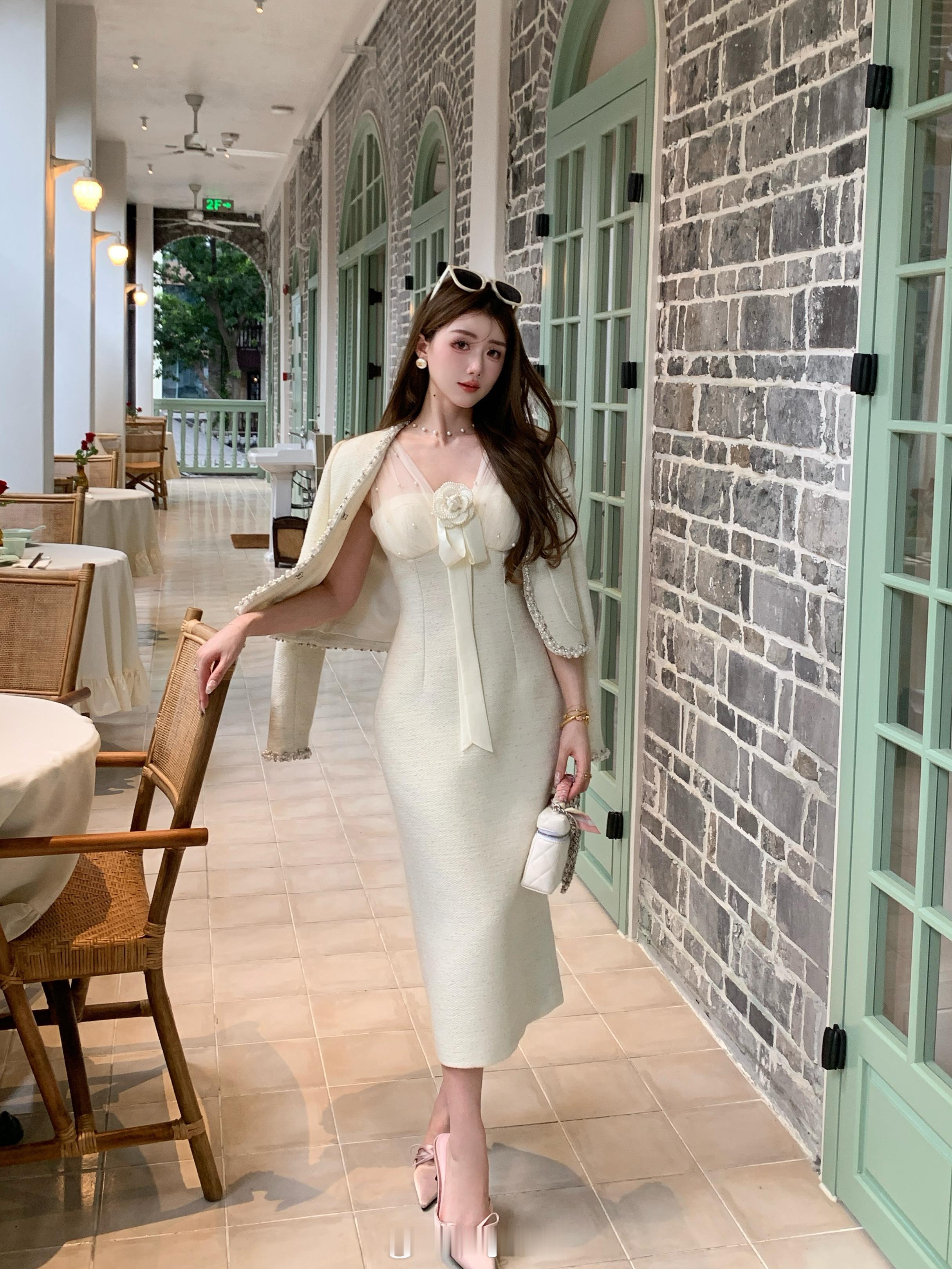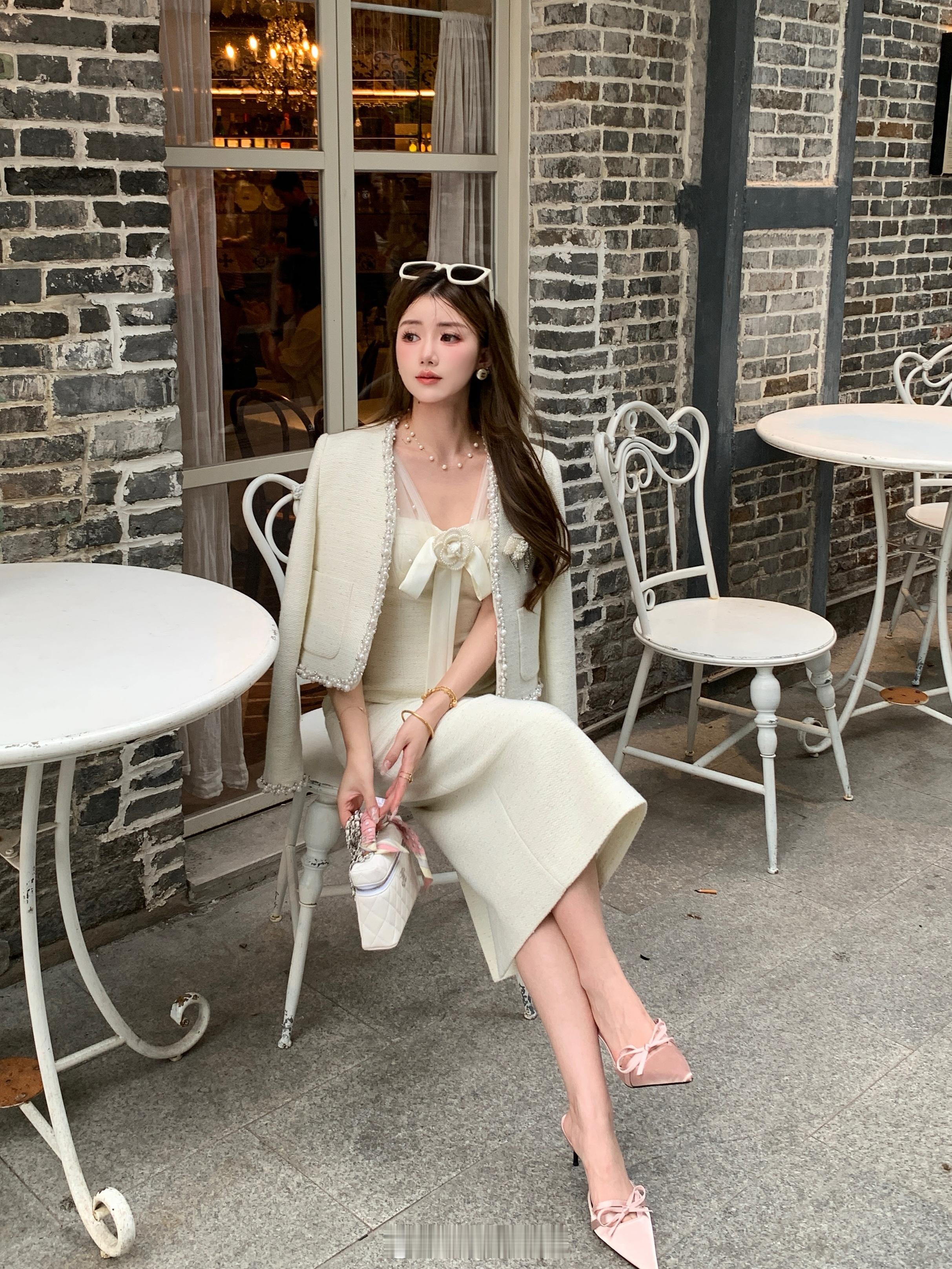 优雅的代名词[心]粗花呢面料自带精致质感内搭连衣裙以蝴蝶结点缀甜美氛围拉满,整体