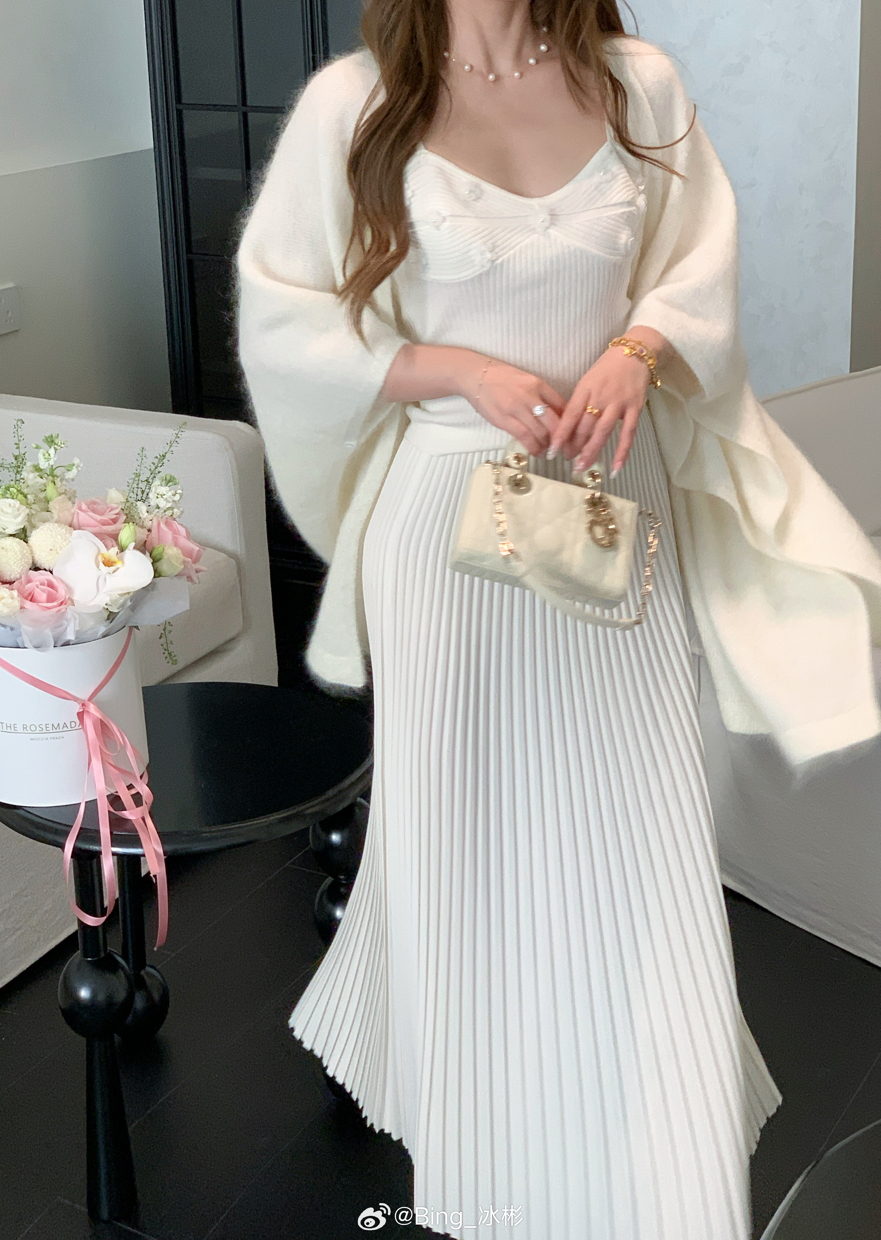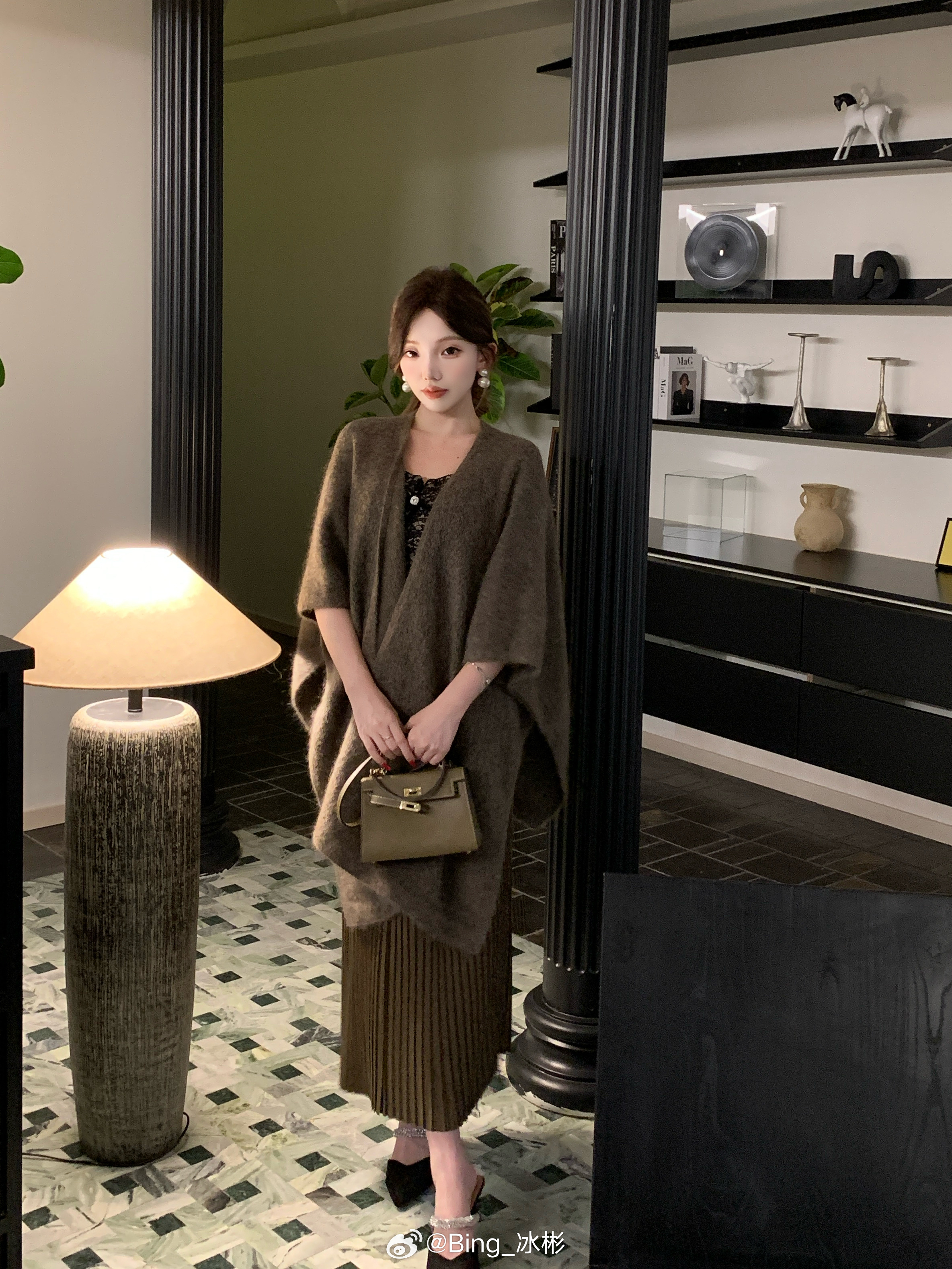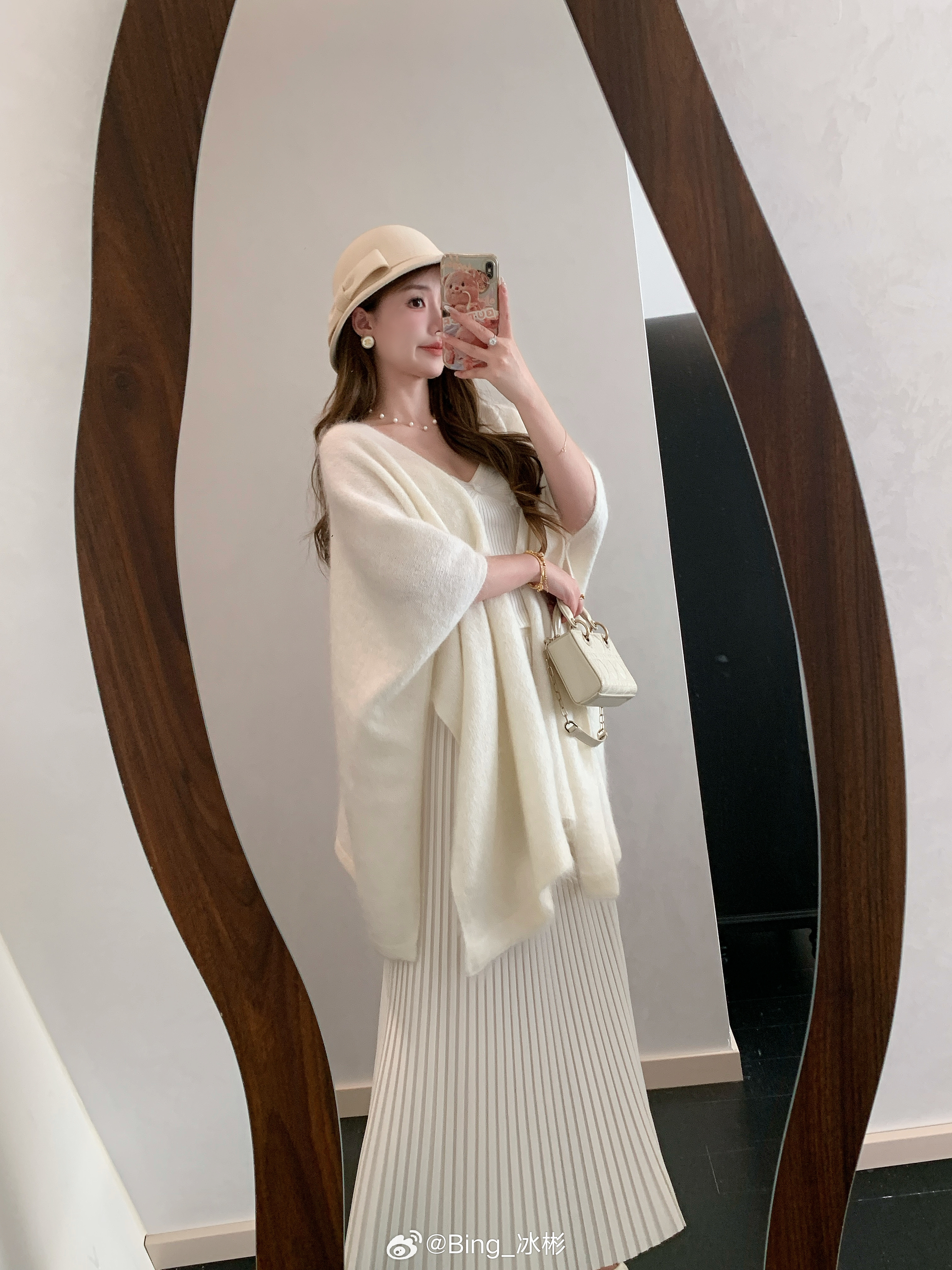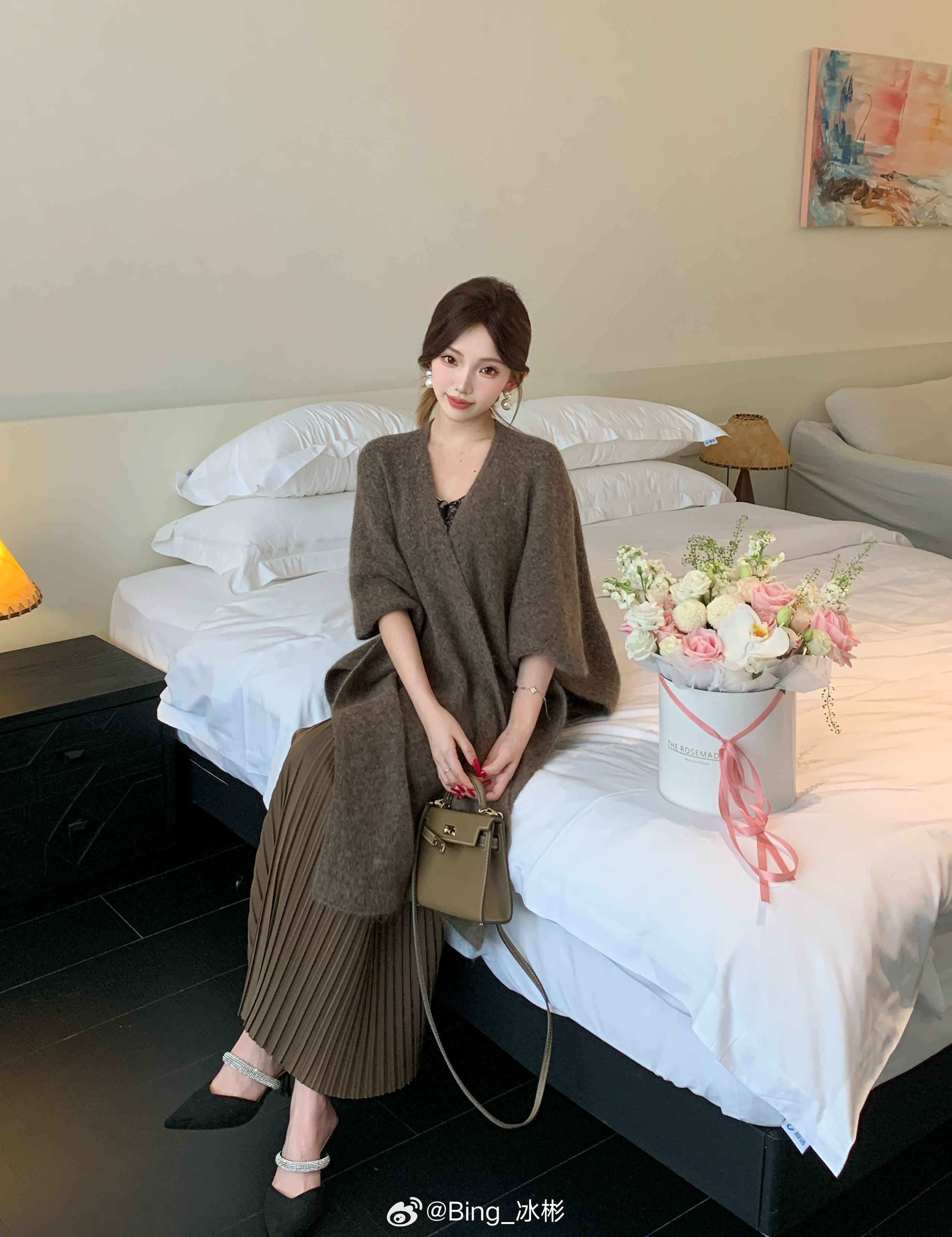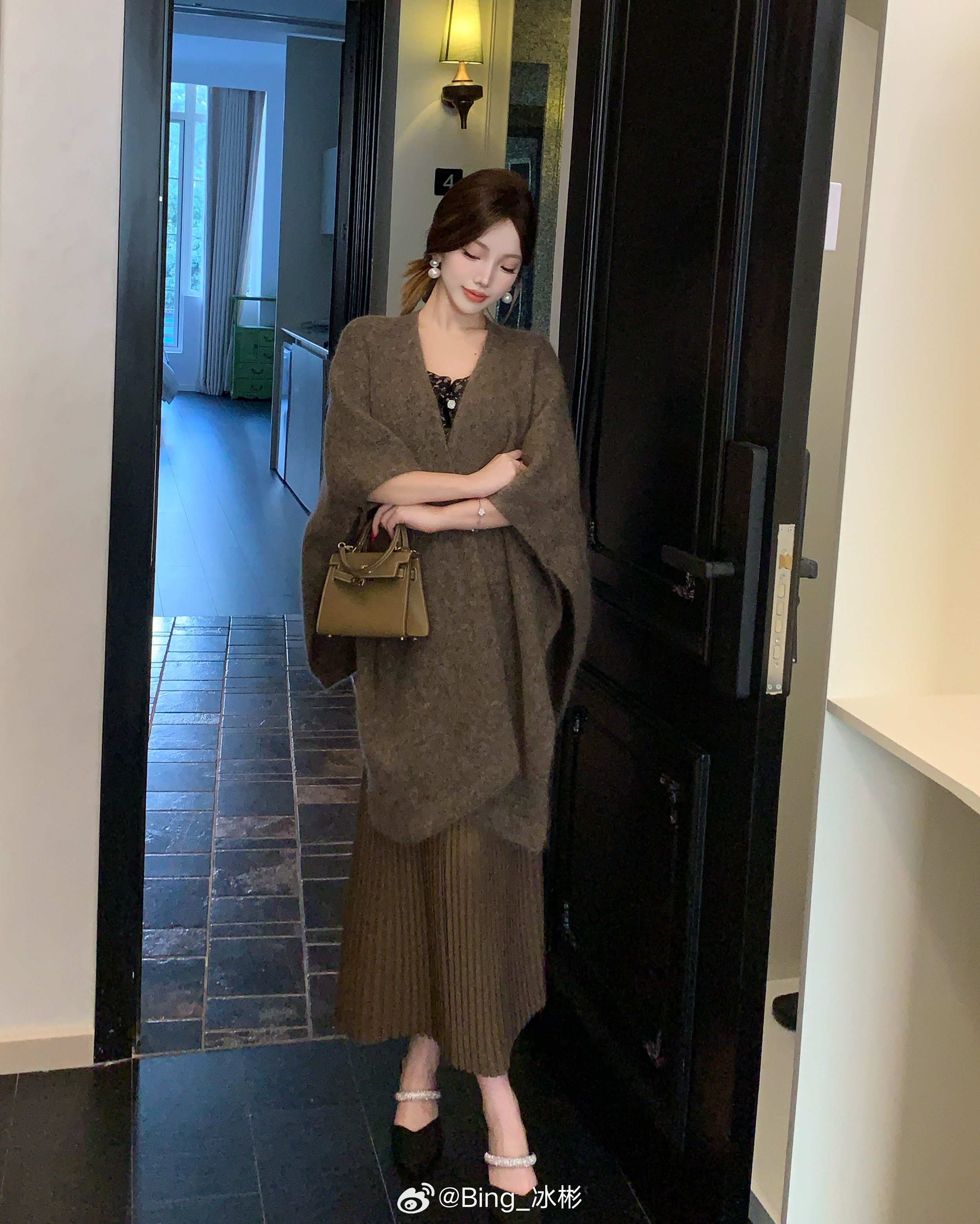 70%马海毛温暖绵糯,搭配针织长裙或者本期的风琴褶半裙都美美美