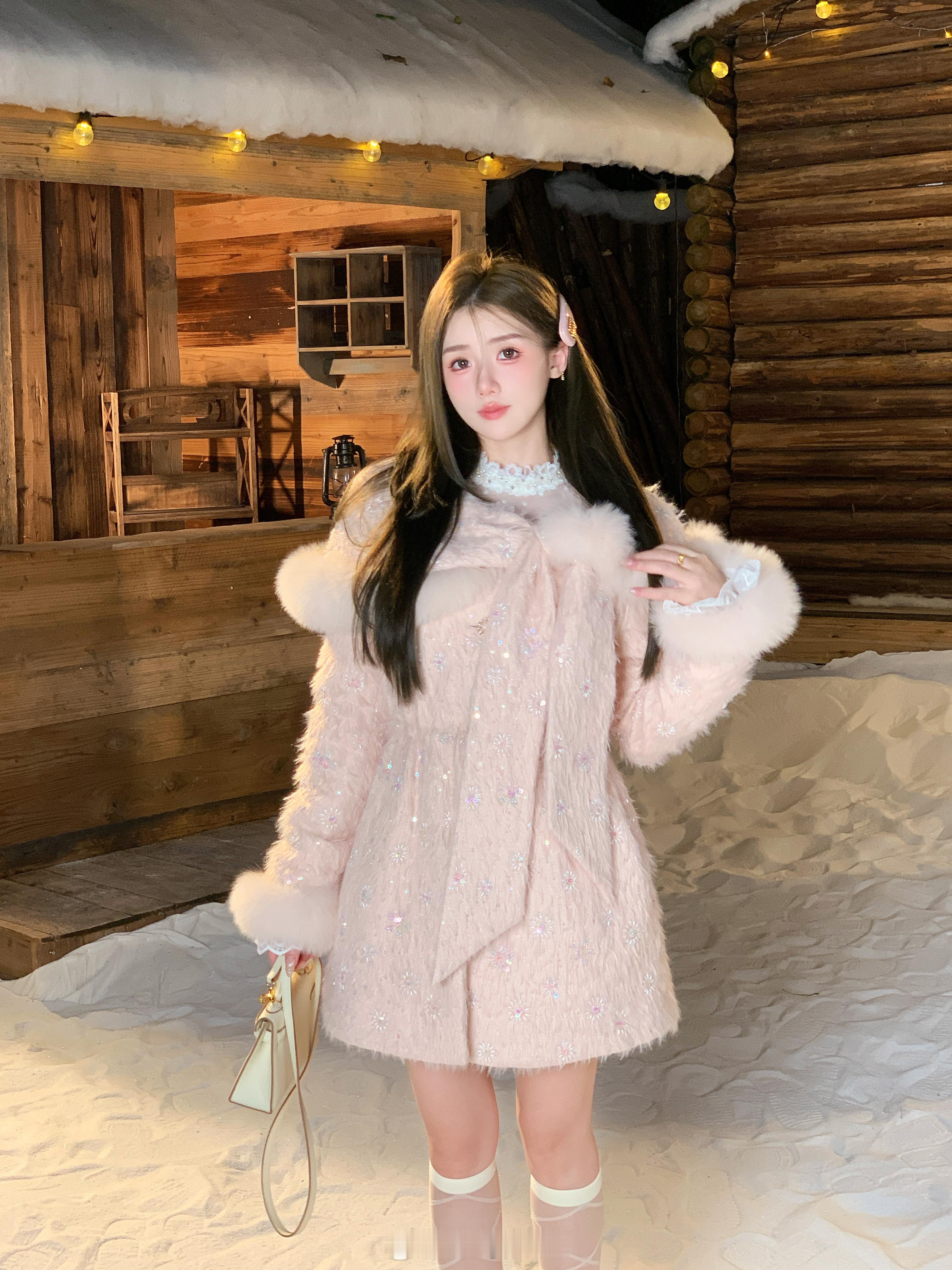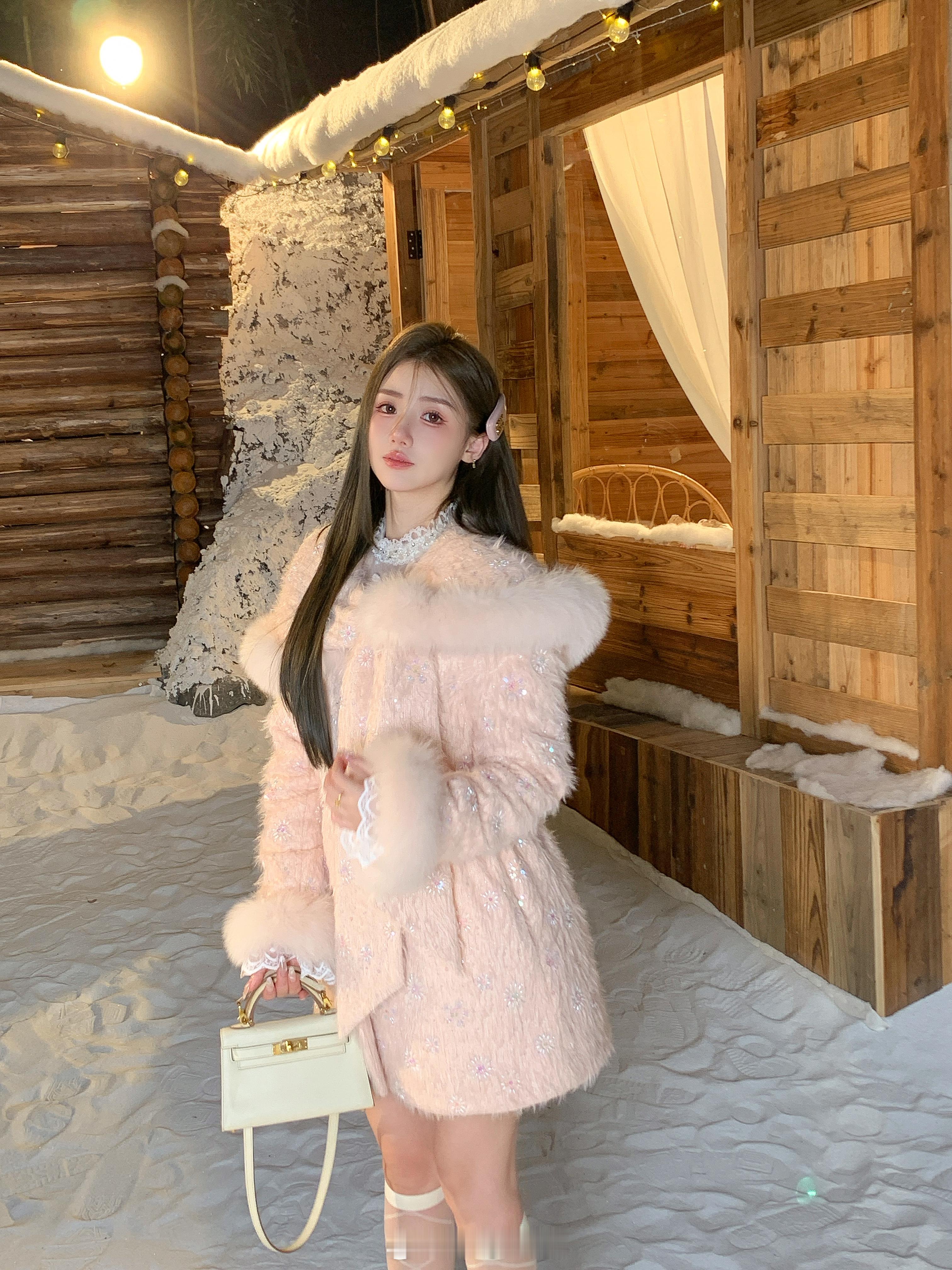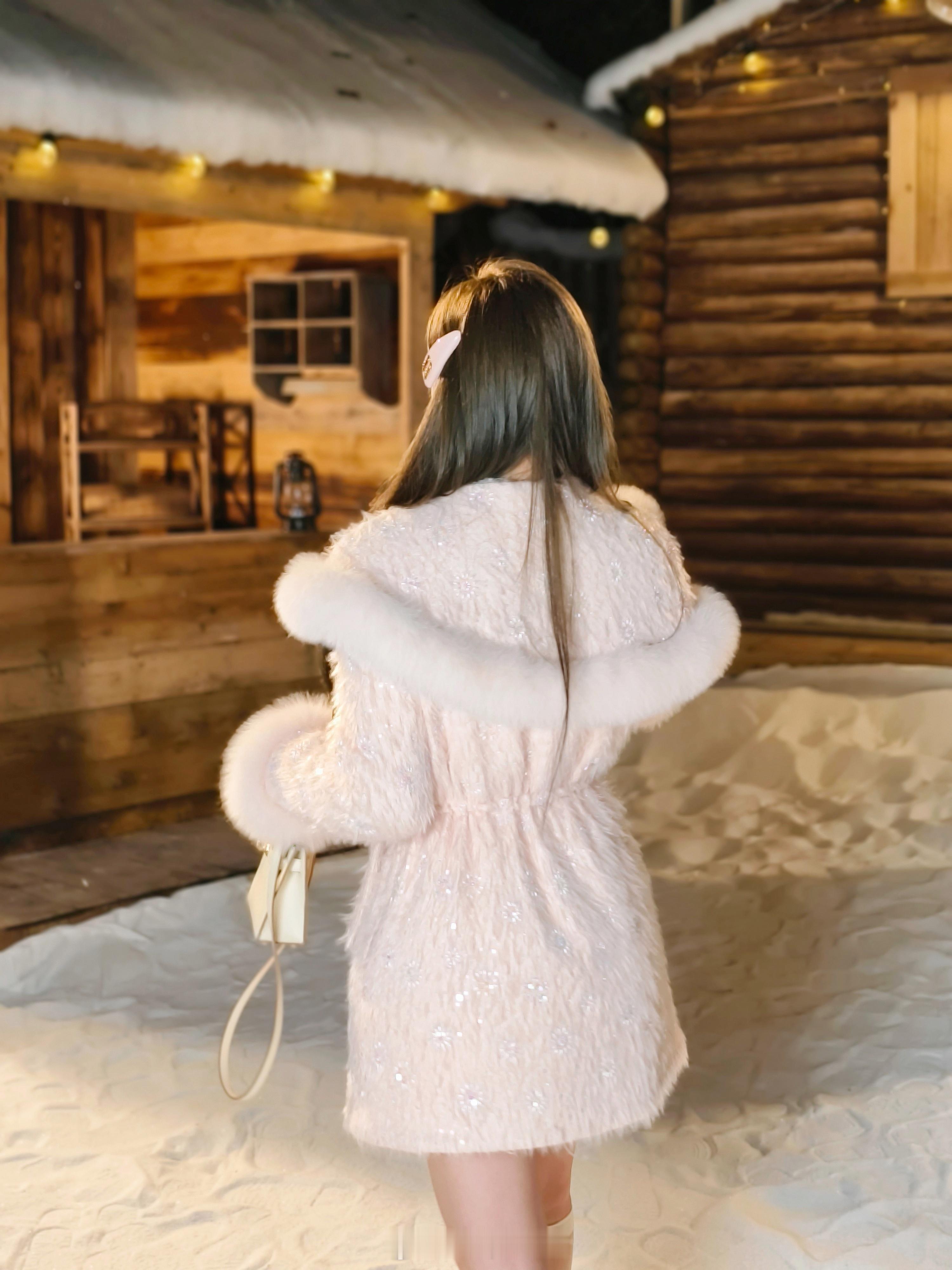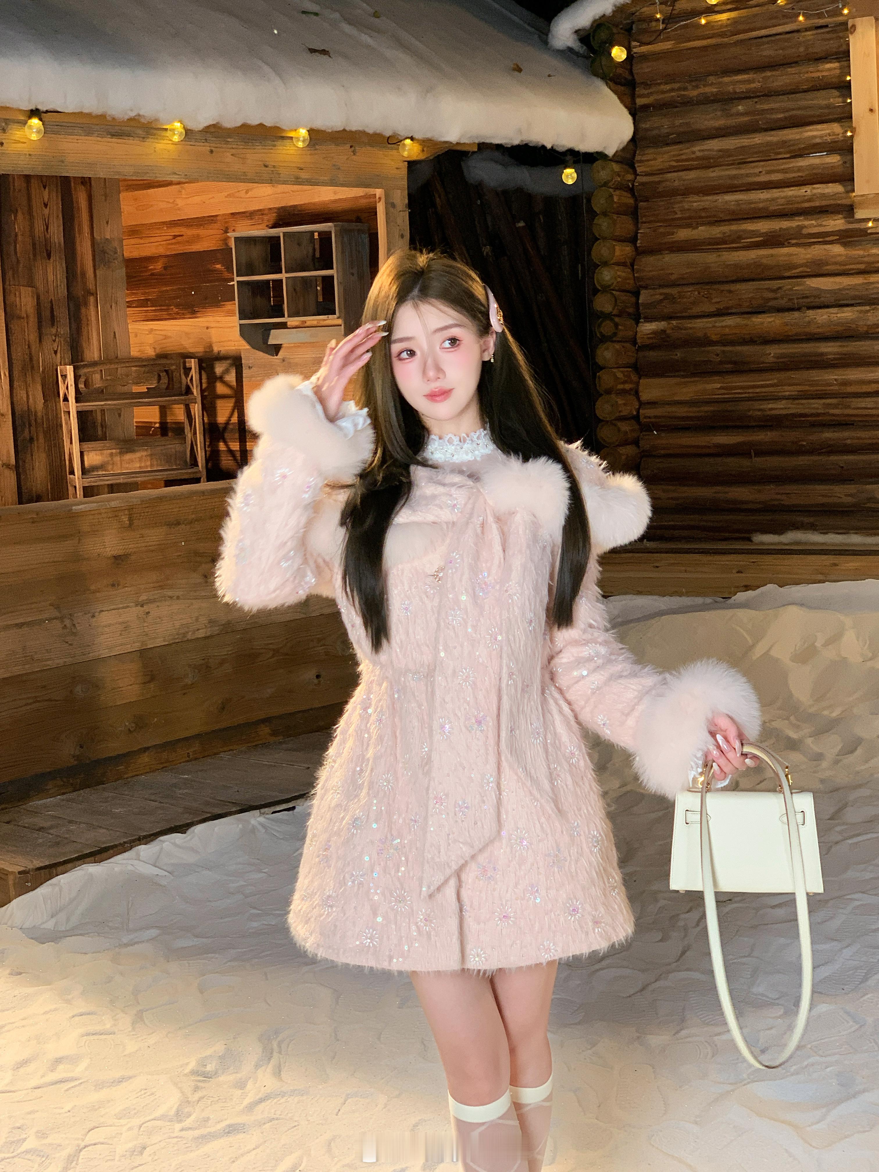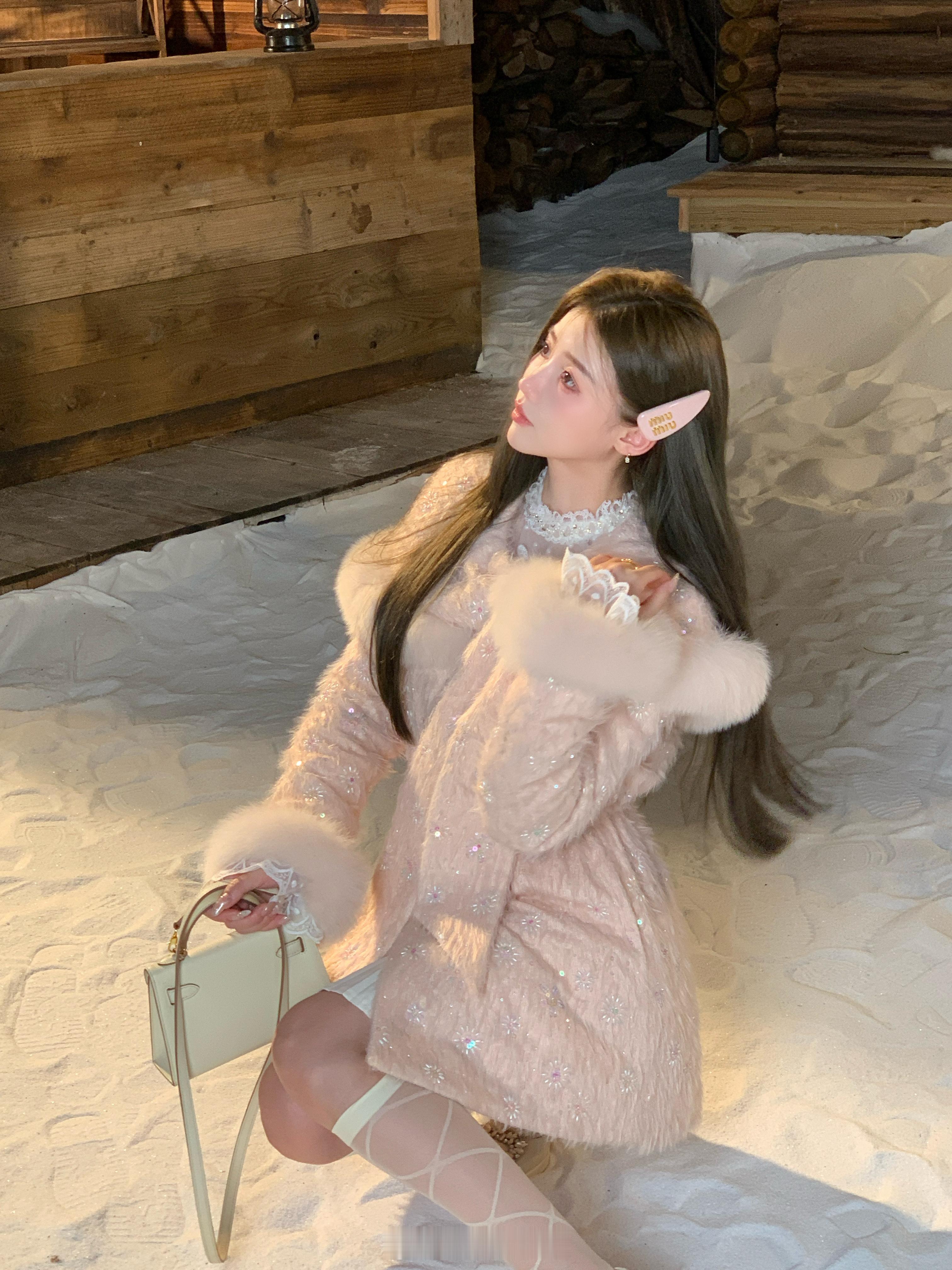 整体是温柔甜美的粉色系,满布闪亮的亮片元素