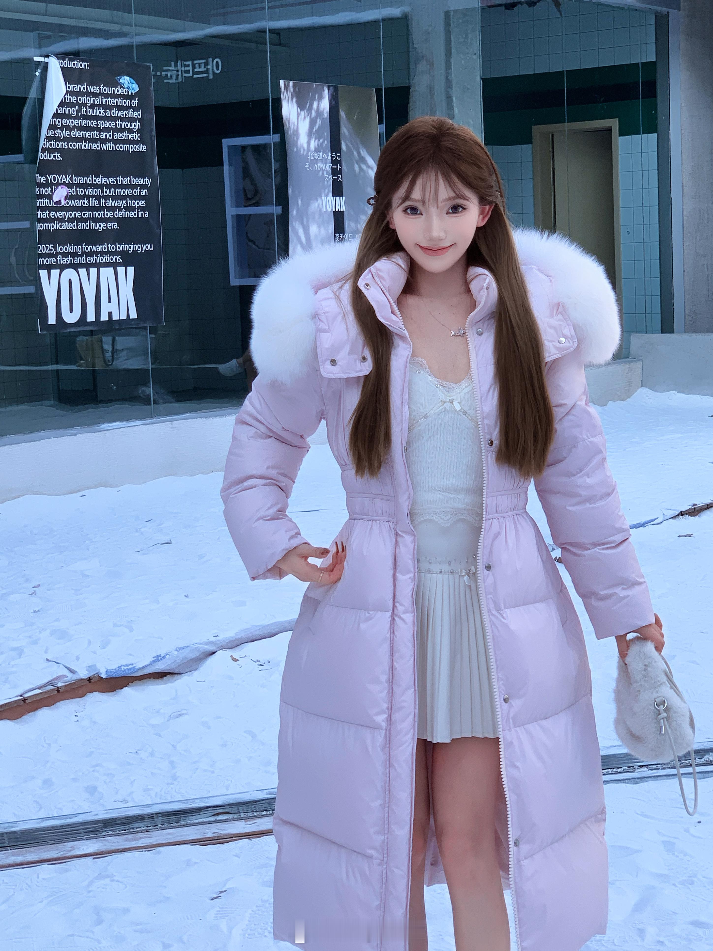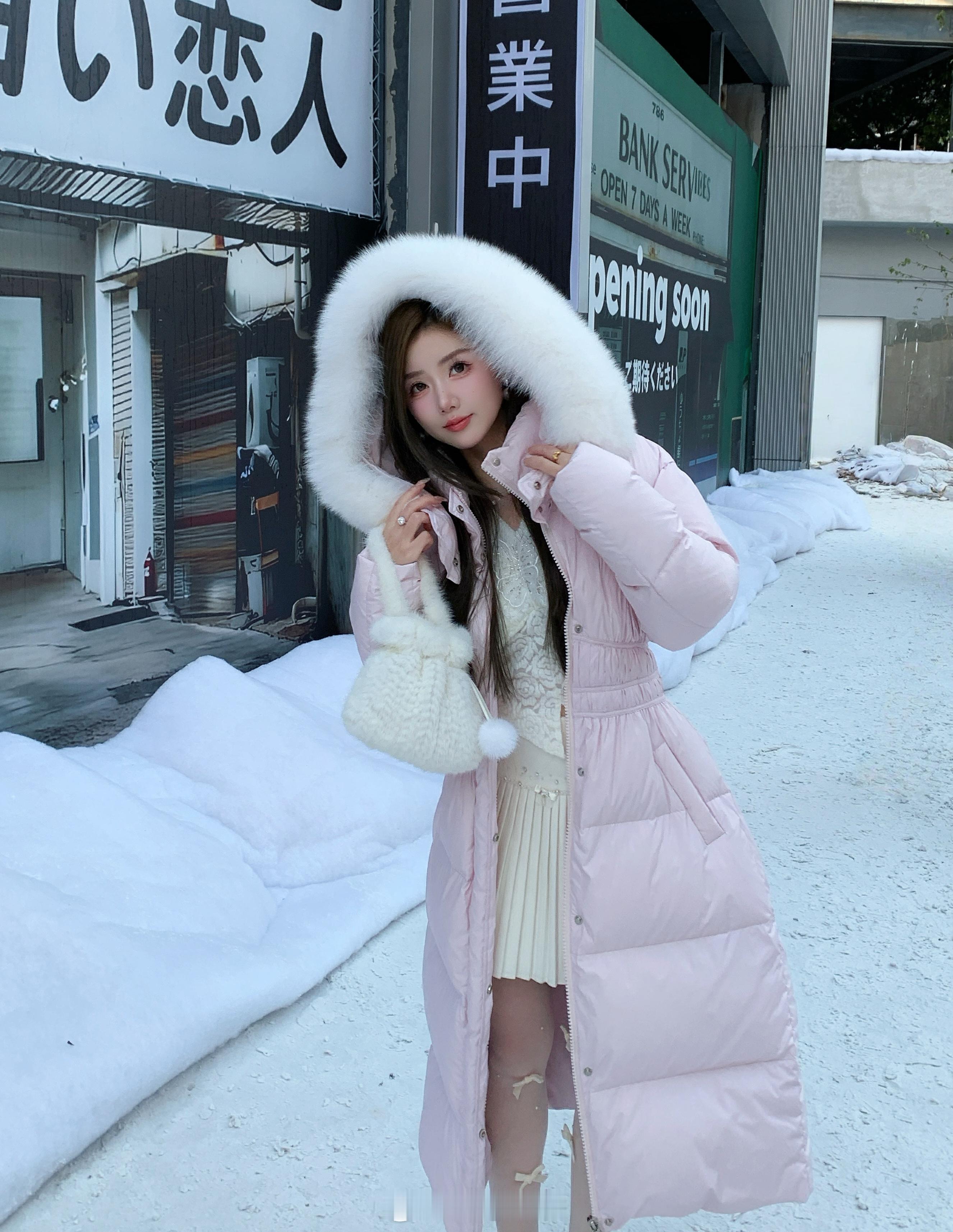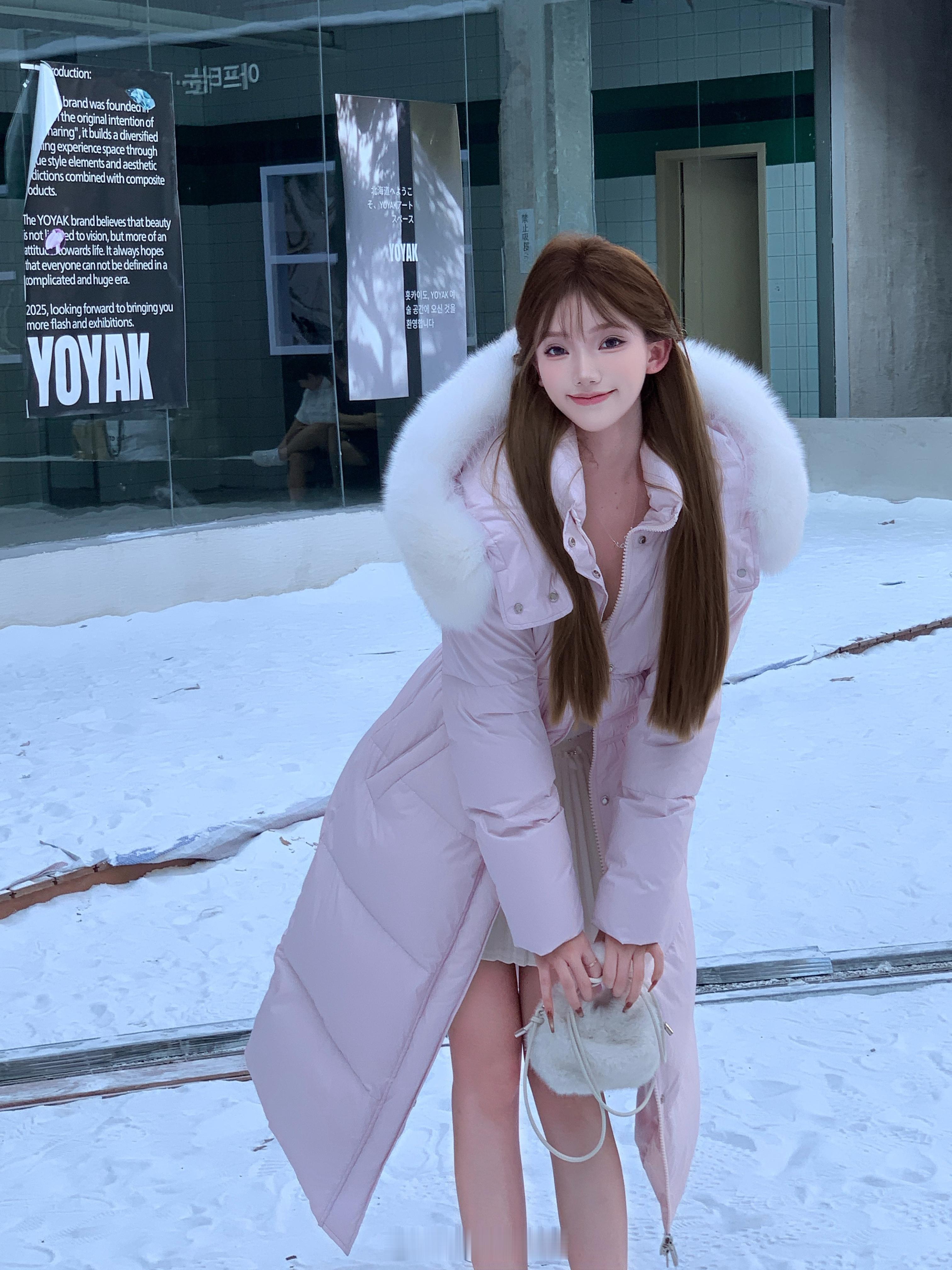 10.20 20:00 🆕 清新少女款的羽绒服搭配超大白色毛绒连帽在冬日雪景