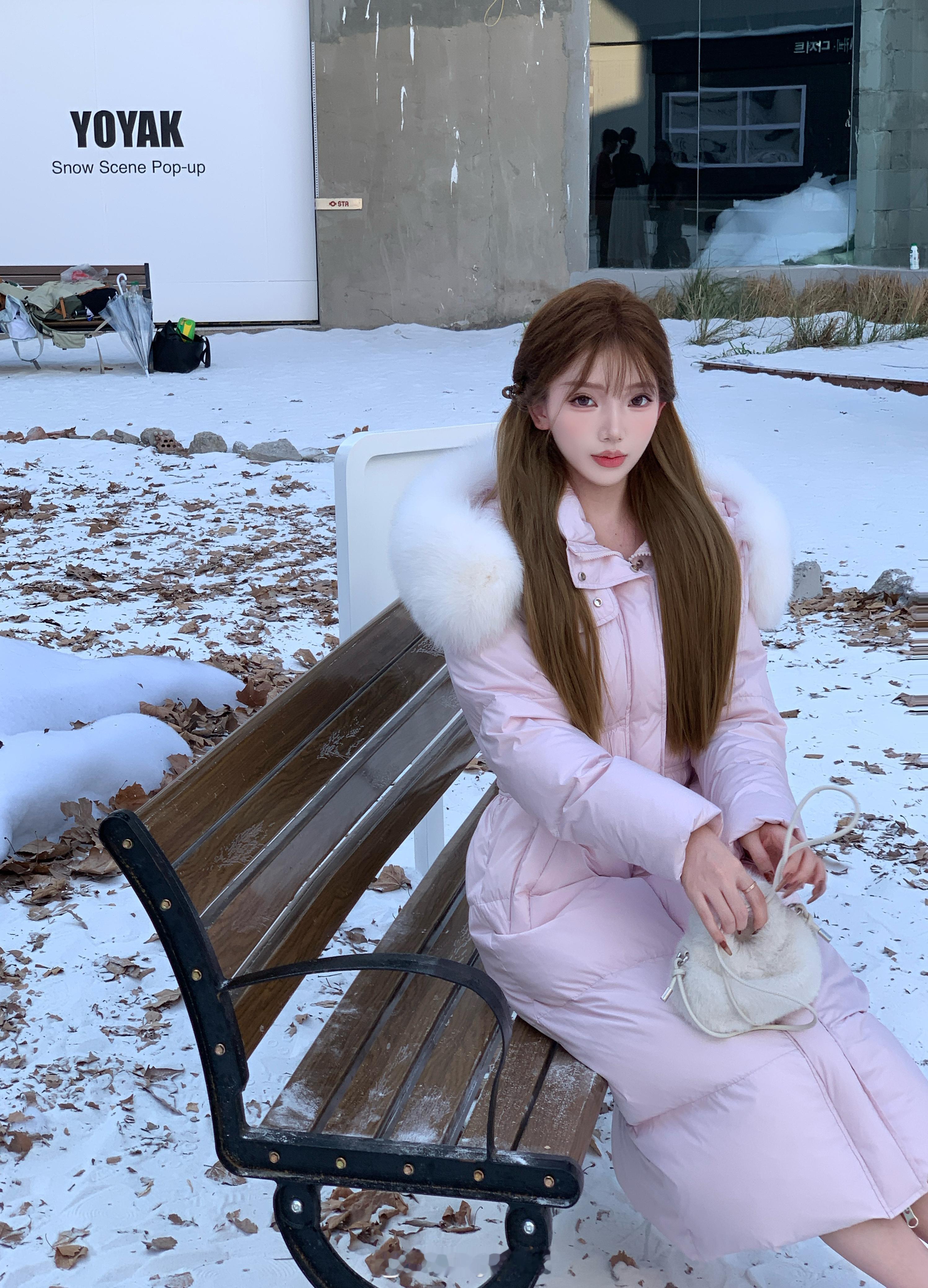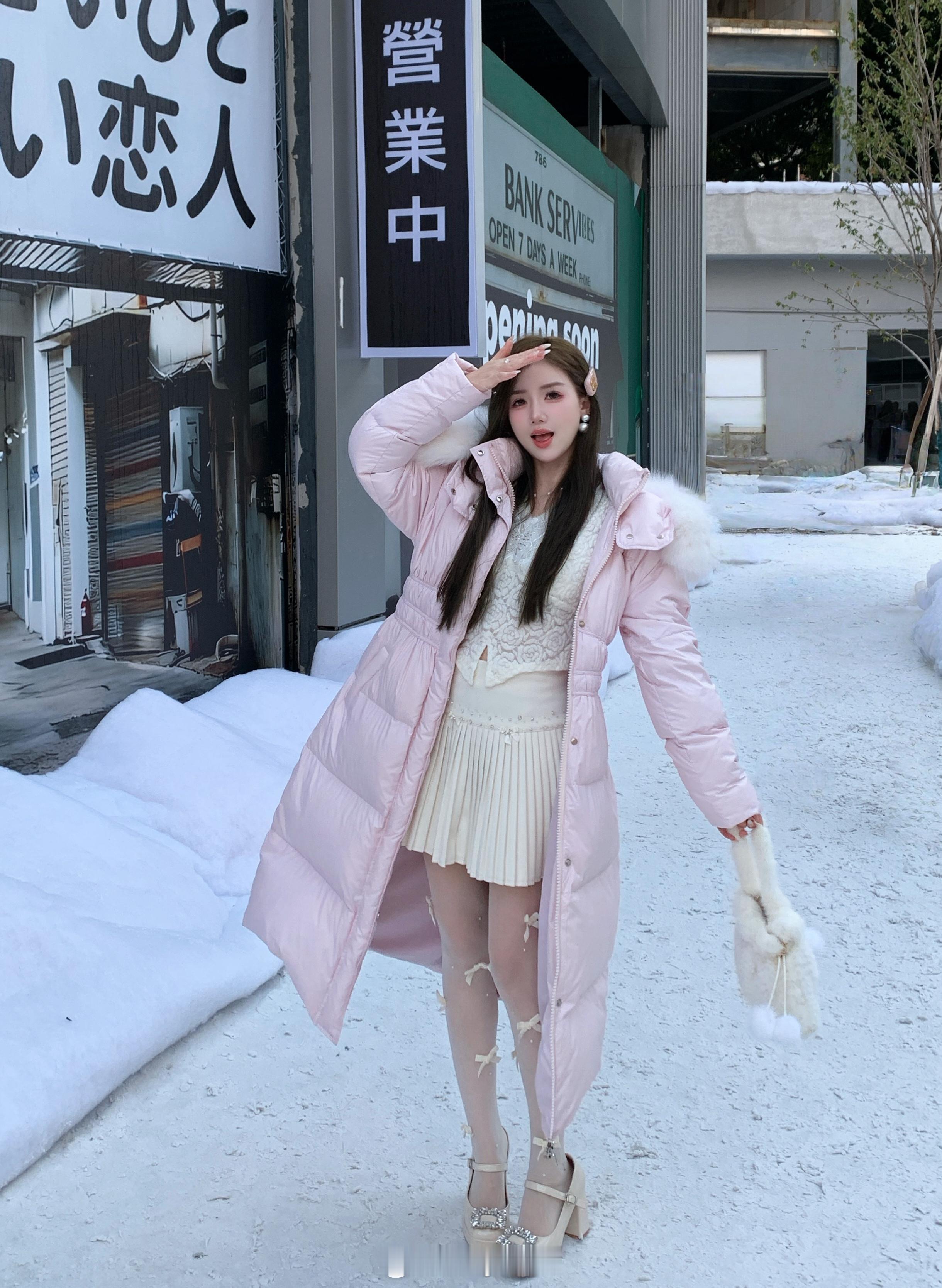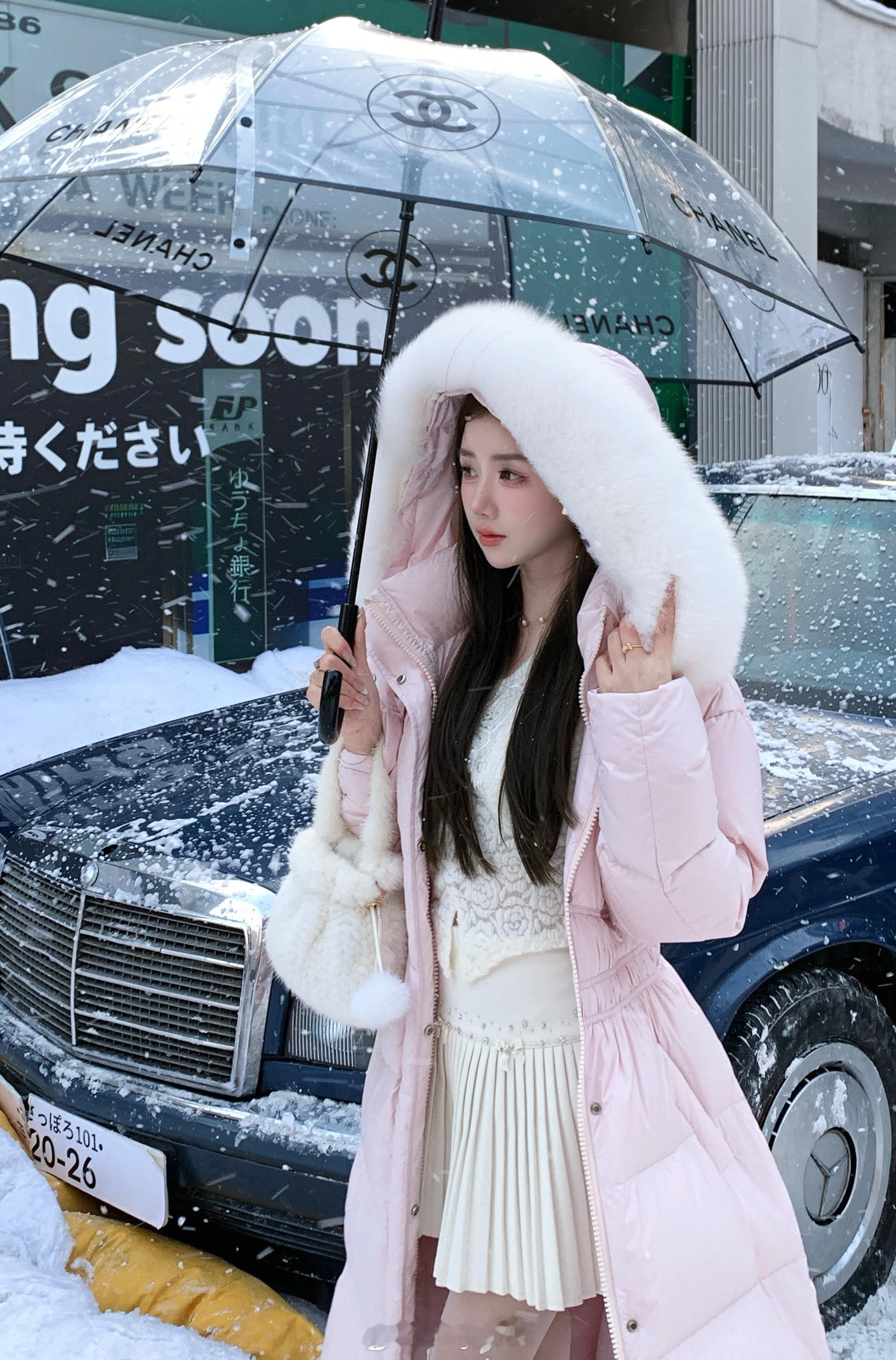 10.20 20:00 🆕 清新少女款的羽绒服搭配超大白色毛绒连帽在冬日雪景