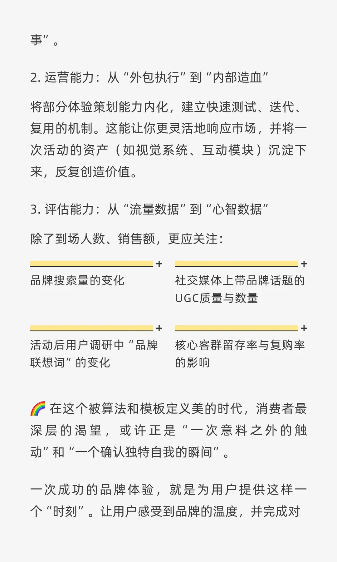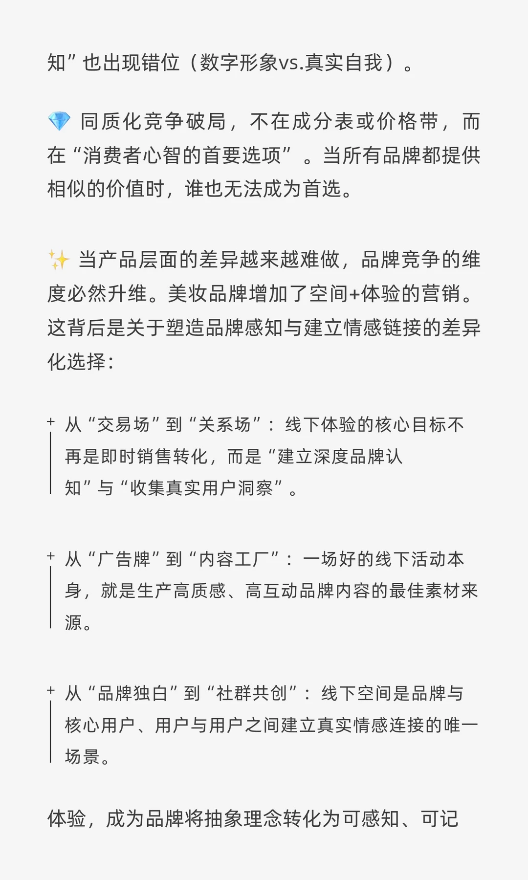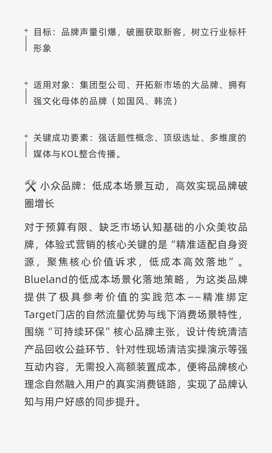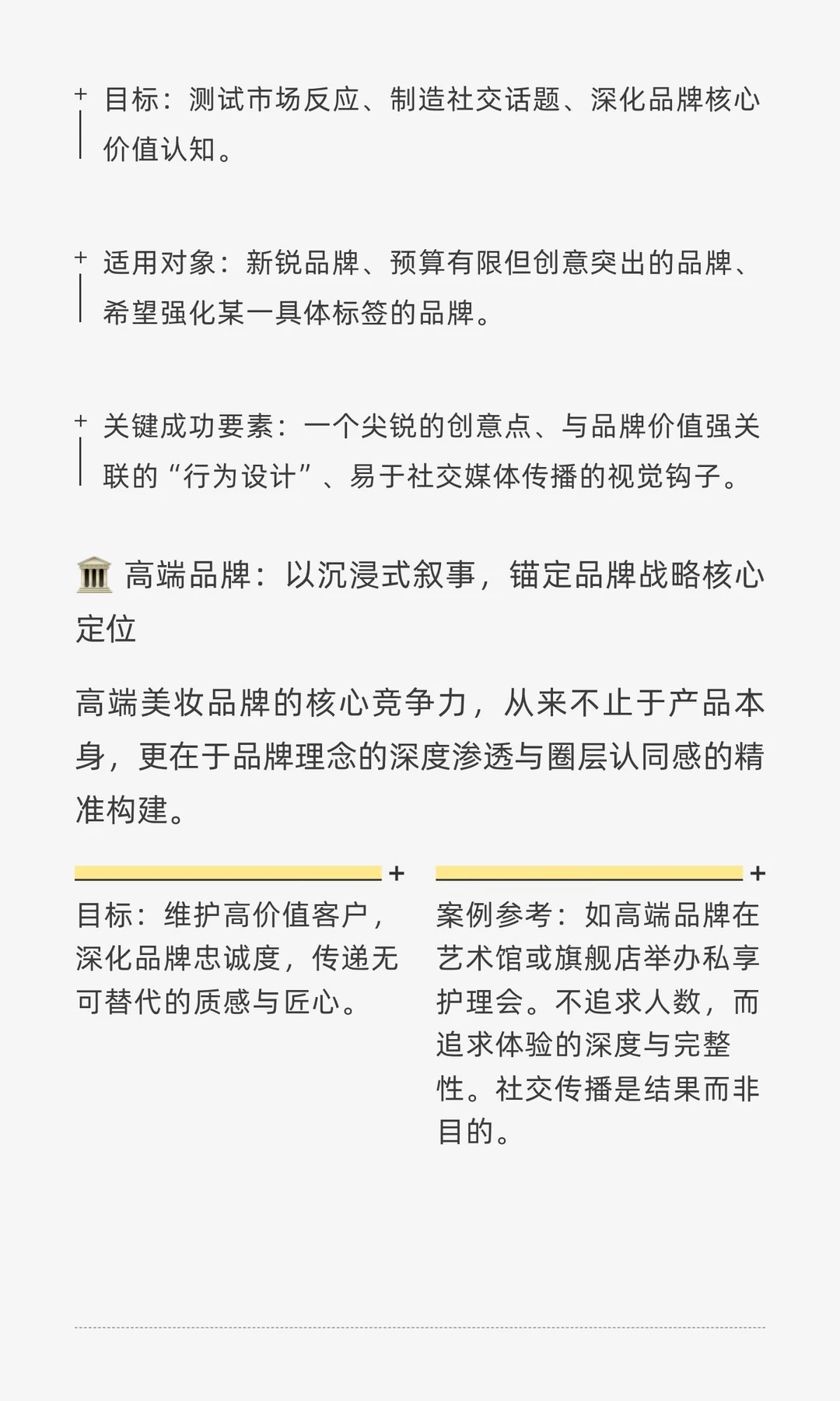品牌通过体验营销构建差异化的护城河,以场景和情感共鸣吸引用户。中腰部品牌通过文化赋能破圈,小众品牌低成本互动高效破圈,高端品牌沉浸式叙事深化忠诚度。体验营销成为品牌战略核心。