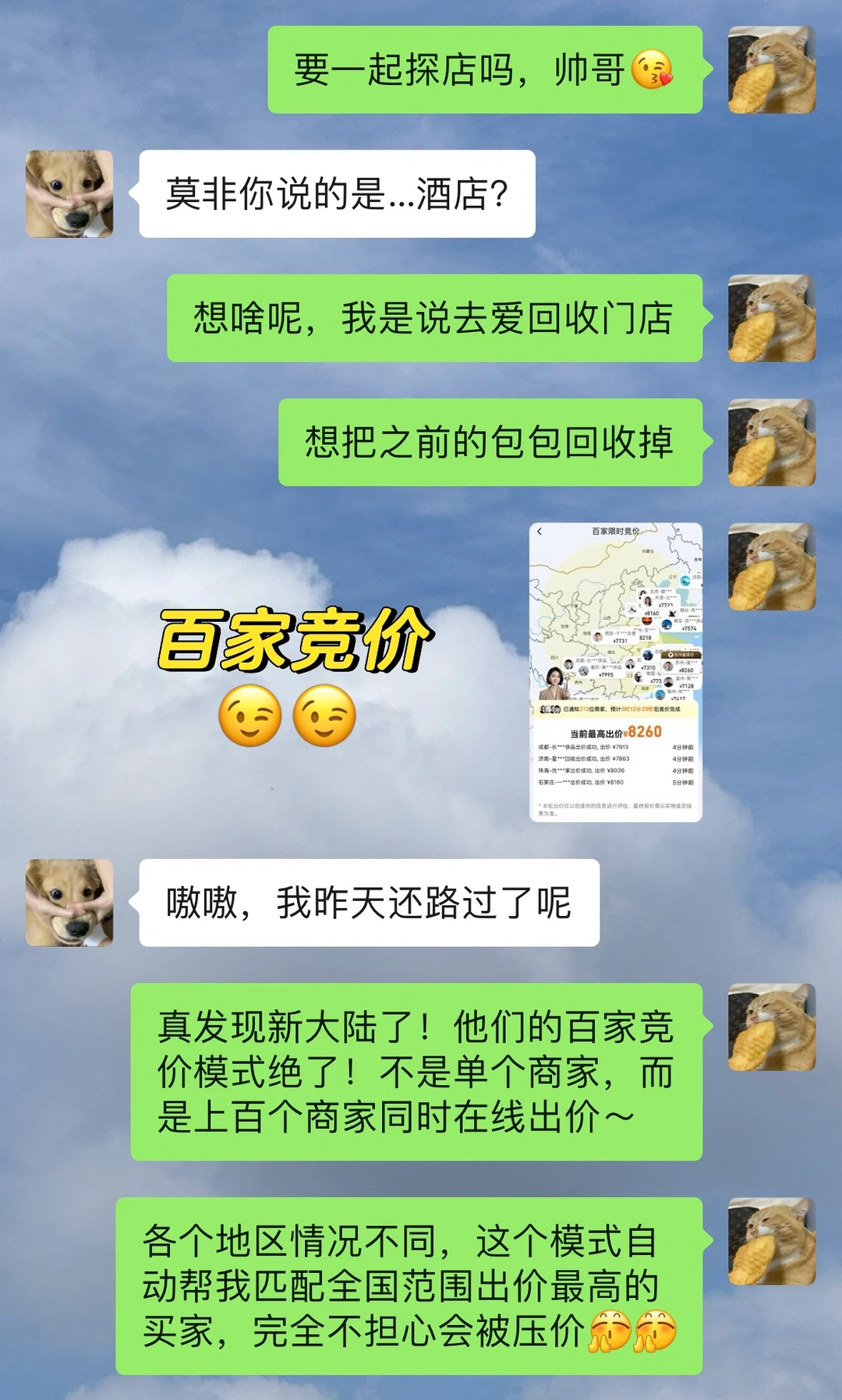 他们有个百家竞价模式,上百个商家在线出价,各个地区供需情况不同,系统自动匹配全国最高价,像个小型拍卖会!完全不担心被压价!而且全国2000+门店,逛商场随便都能找到😊