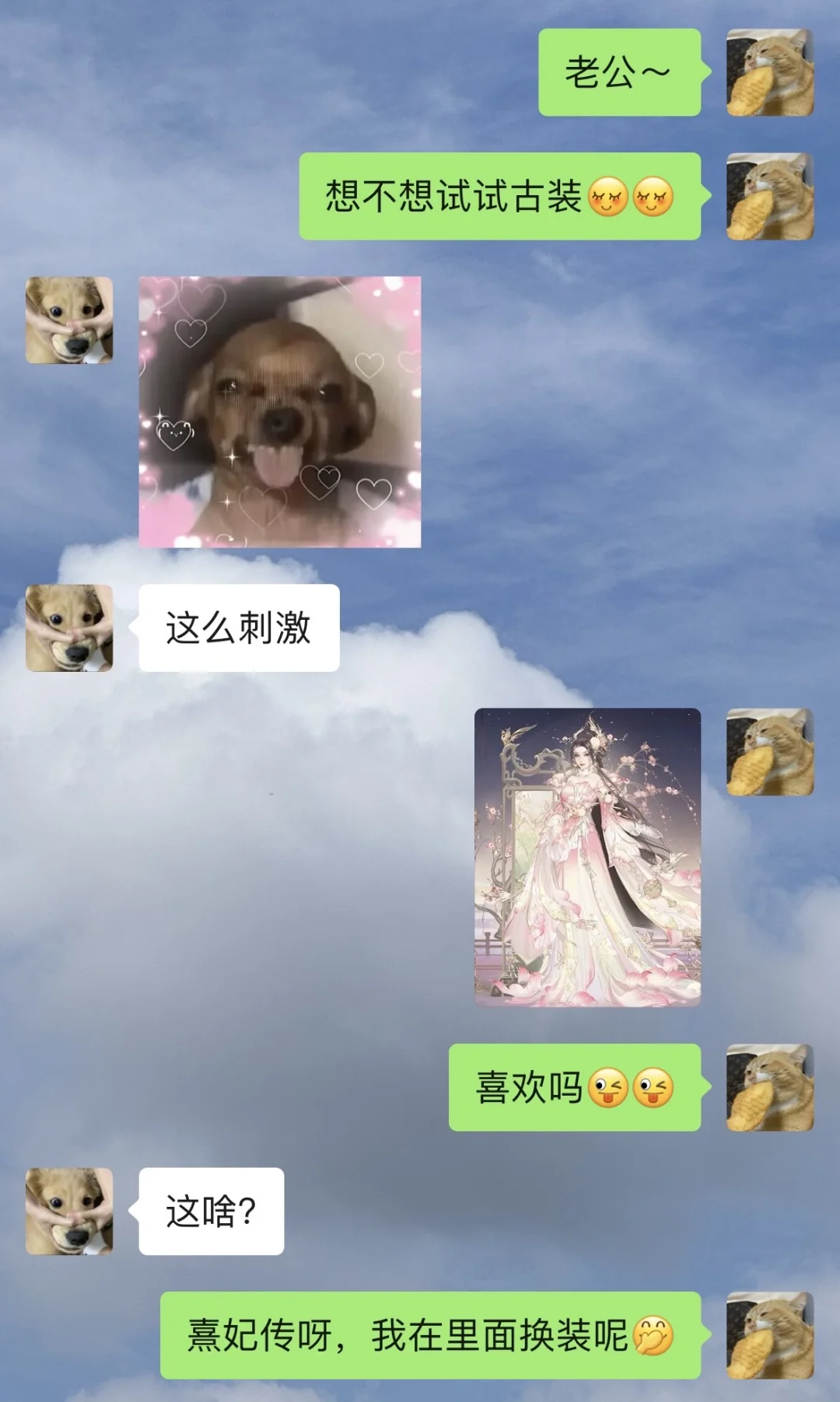 调戏男朋友成了我每天的快乐源泉,他还以为是我新买了古装的衣服奖励他呢[吐舌头H][吐舌头H],结果是我在游戏里的衣服哈哈哈。