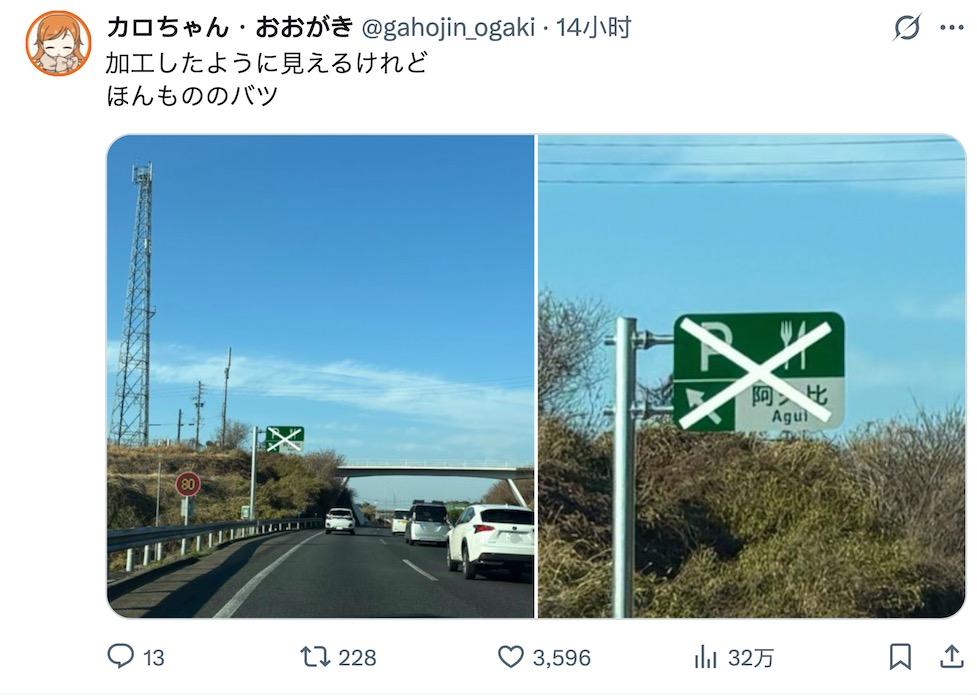 看起来像P上去的,其实是原图。日本的某高速服务区,由于还没有建好,但是牌子竖好了,于是直接打个叉。等月底建好了再把胶带撕掉
