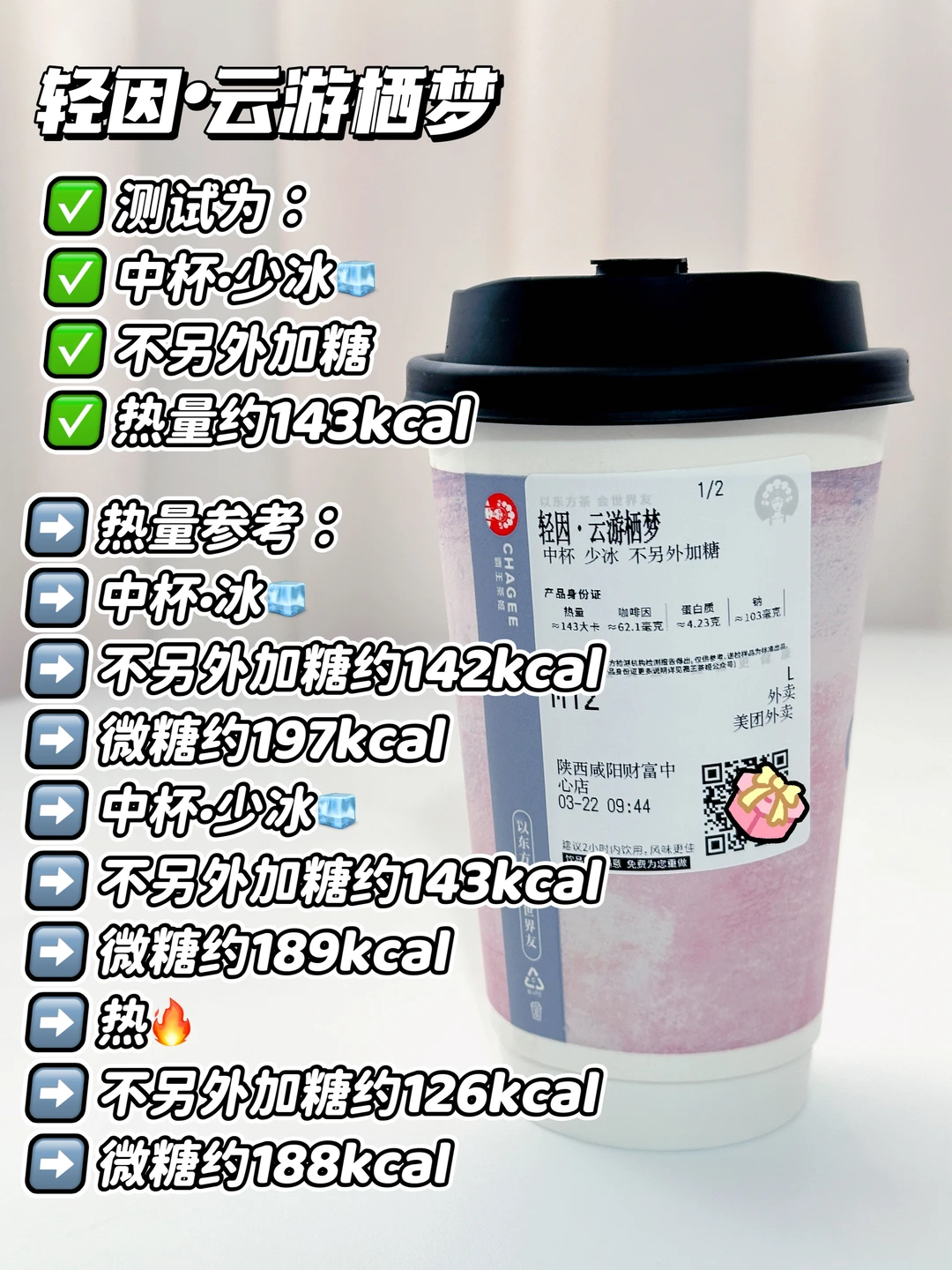 测试为:中杯·少冰🧊不另外加糖 热量约143kcal