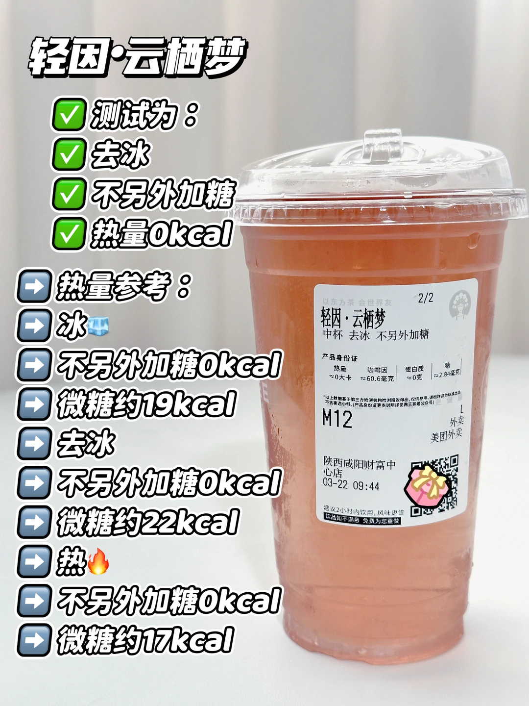 测试为:中杯·去冰🧊不另外加糖 热量0kcal