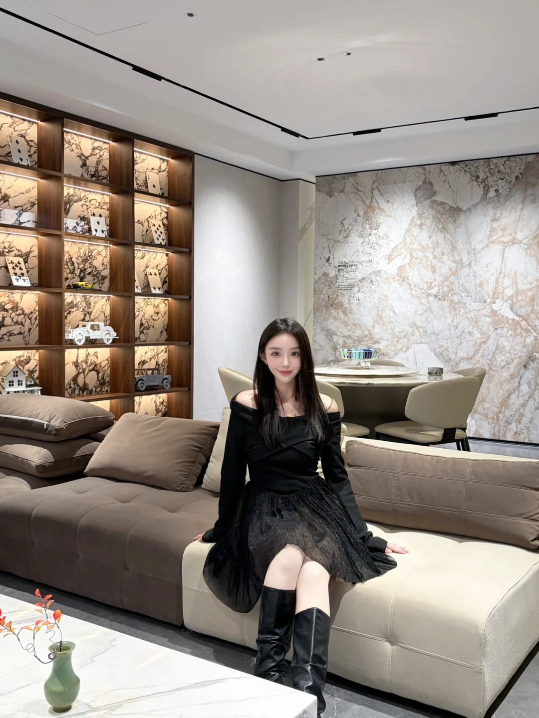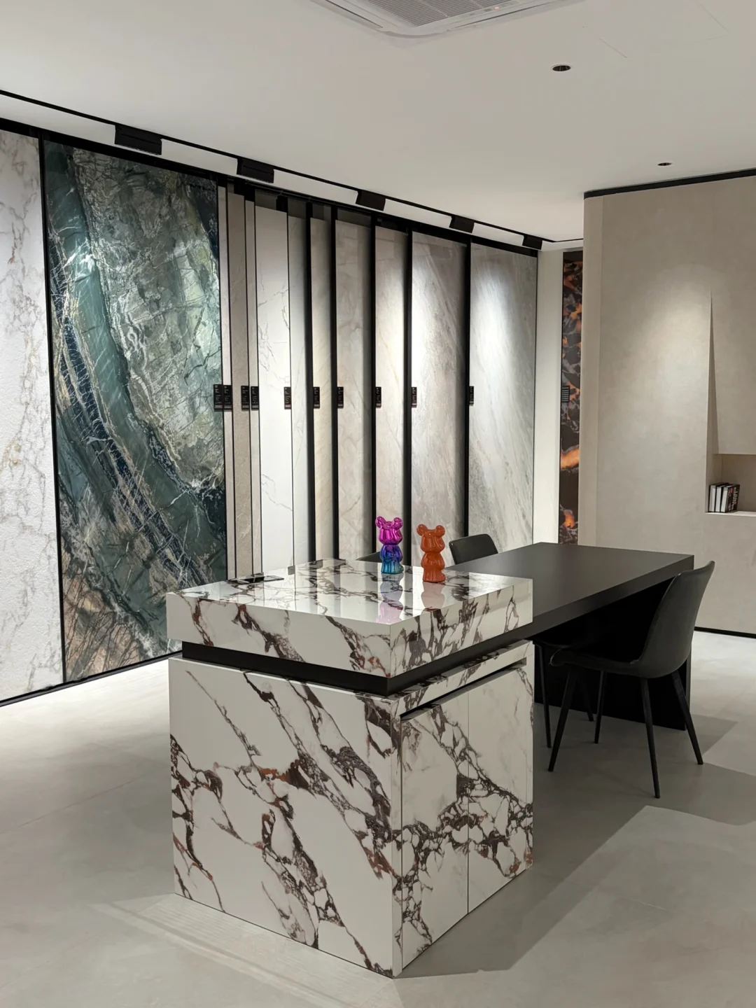整个空间像一座材料美学馆,光影和岩板交织,移步换景,矿山开采的设计概念太有张力了,完全颠覆我对岩板的刻板印象⚜