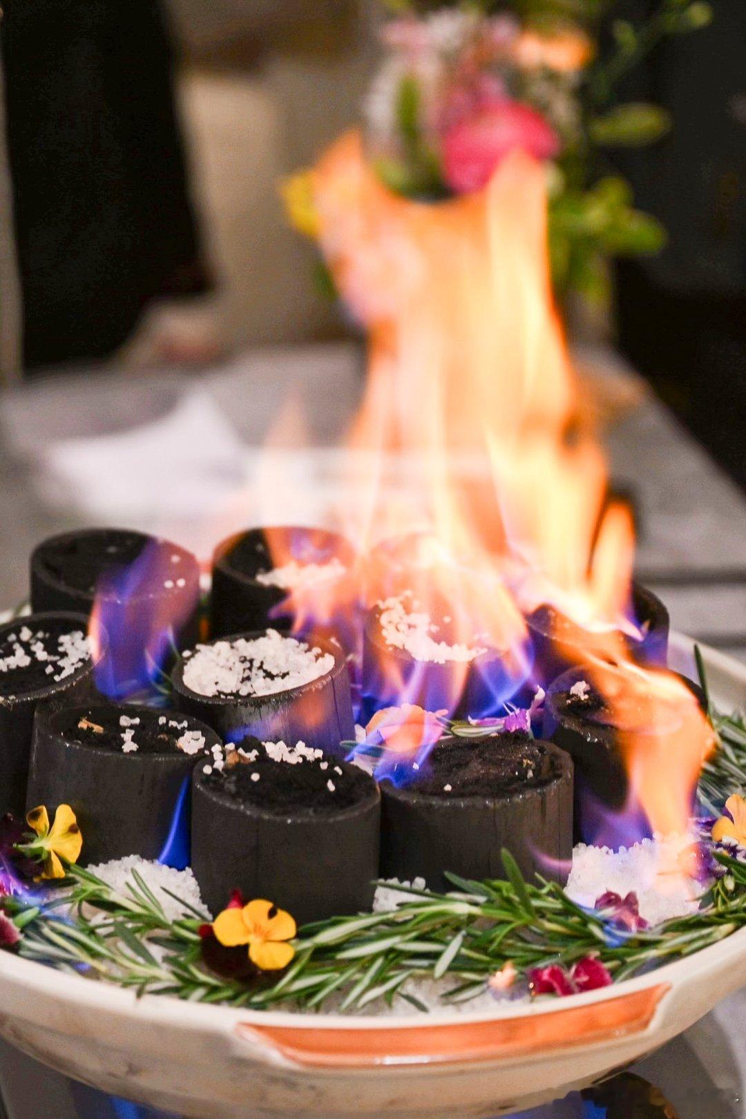 香草竹炭包烧东山小管用云南包烧技法,荷叶包裹小管和春日香草,竹炭慢烤,打开那一刻香气扑出来,仪式感和味道都在线。