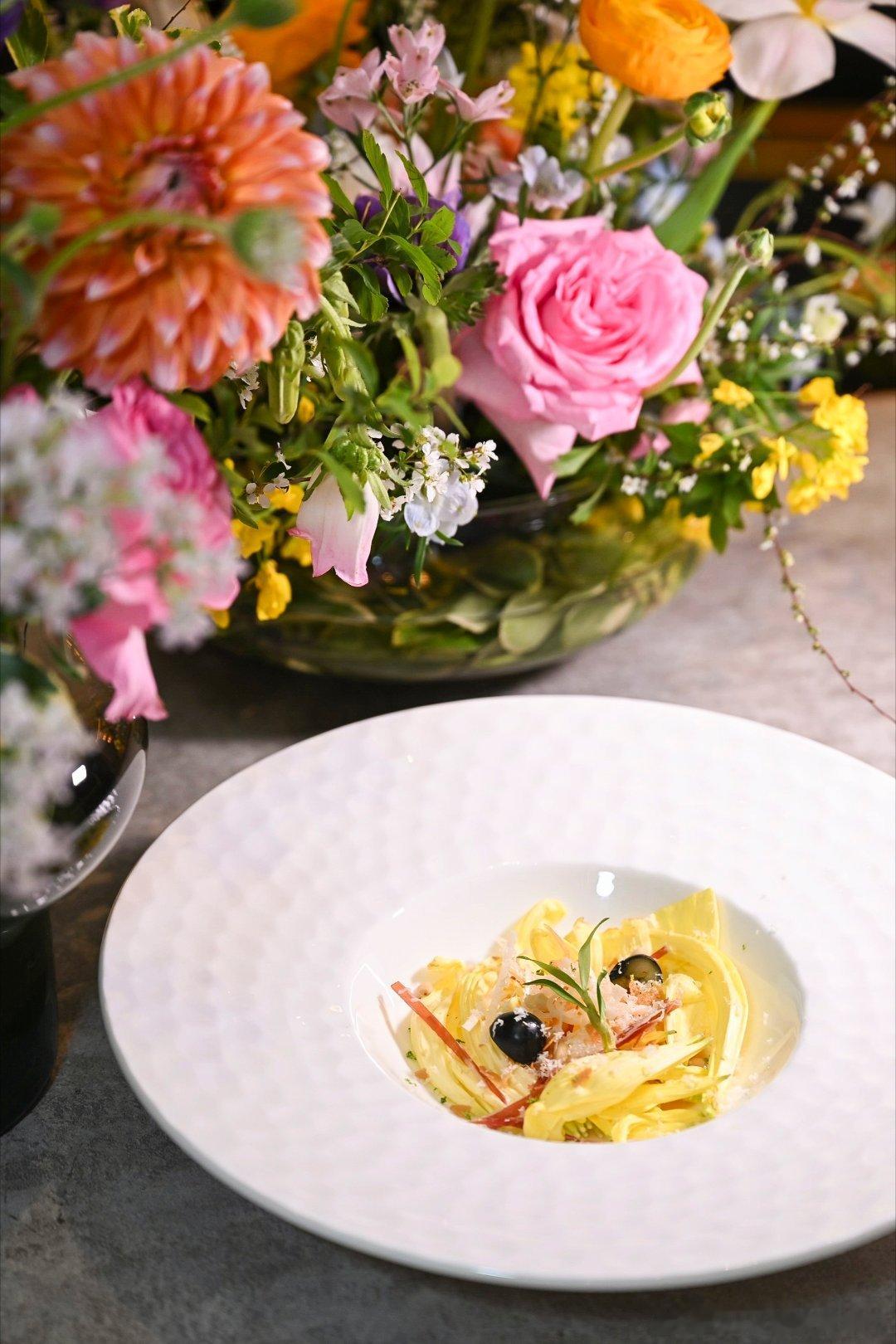 玫瑰、金雀花、太阳菊、香椿、茉莉花、春茶……这些原本在云南山野间生长的味道,被“舌尖中国认证滇菜艺术家”刘新和夏宫主厨于泽朋,用完全不同的技法,做成了一桌真正意义上的「花入馔」春日宴。