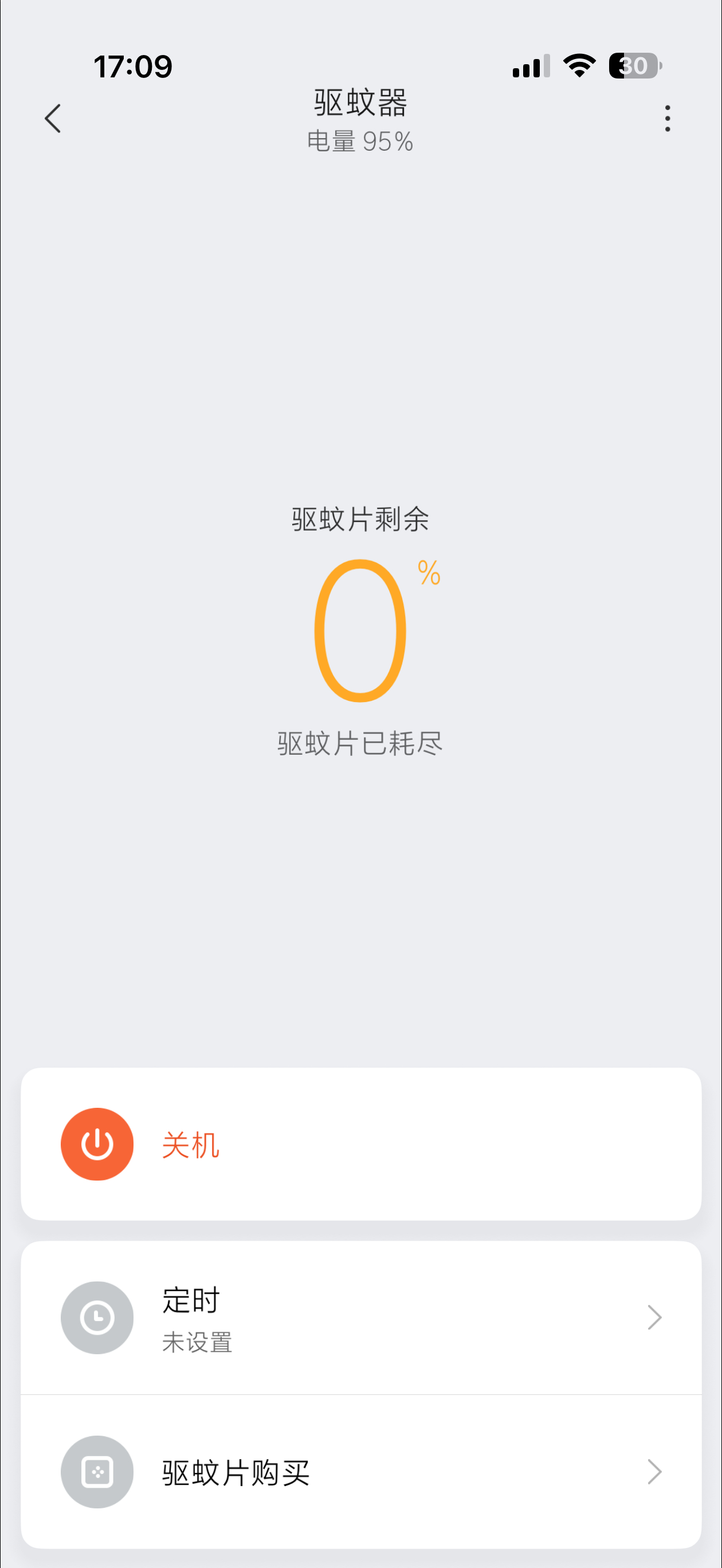 然后连接APP后发现驱蚊片好像用完了,但是跳转去买,没得卖了,无解了😂