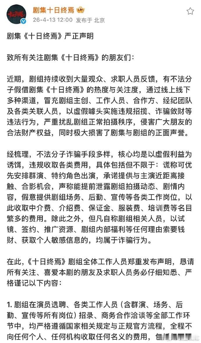 十日终焉剧组声明十日终焉剧组严正声明 十日终焉剧组严正声明,大家一定要提高防范意
