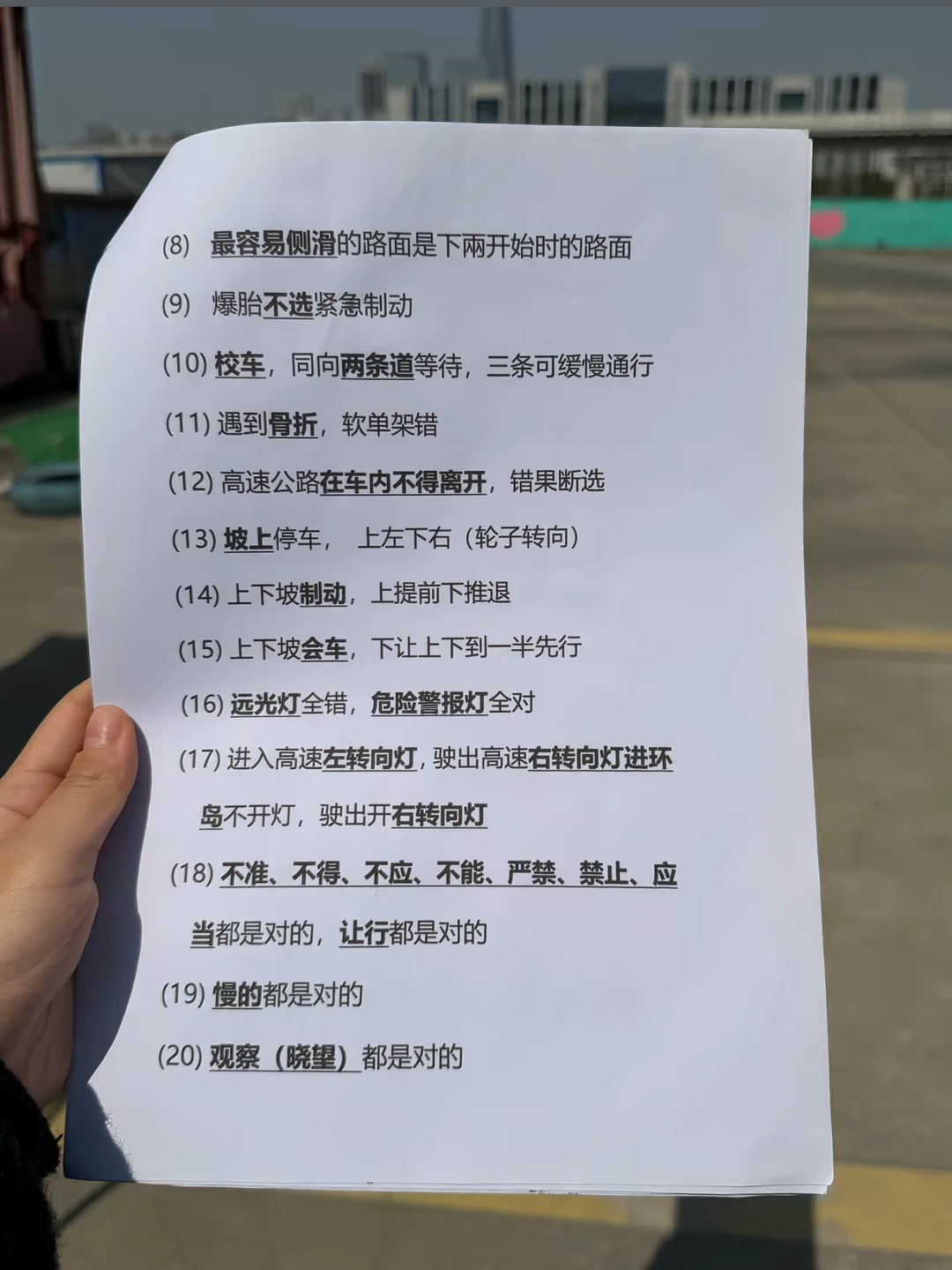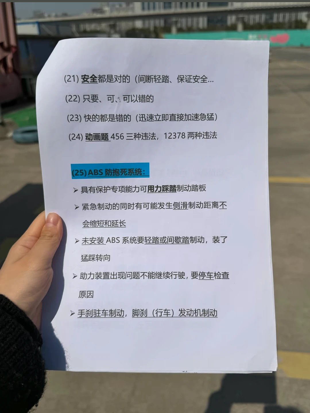 • 选项中有鸣喇叭不选,选其余三个