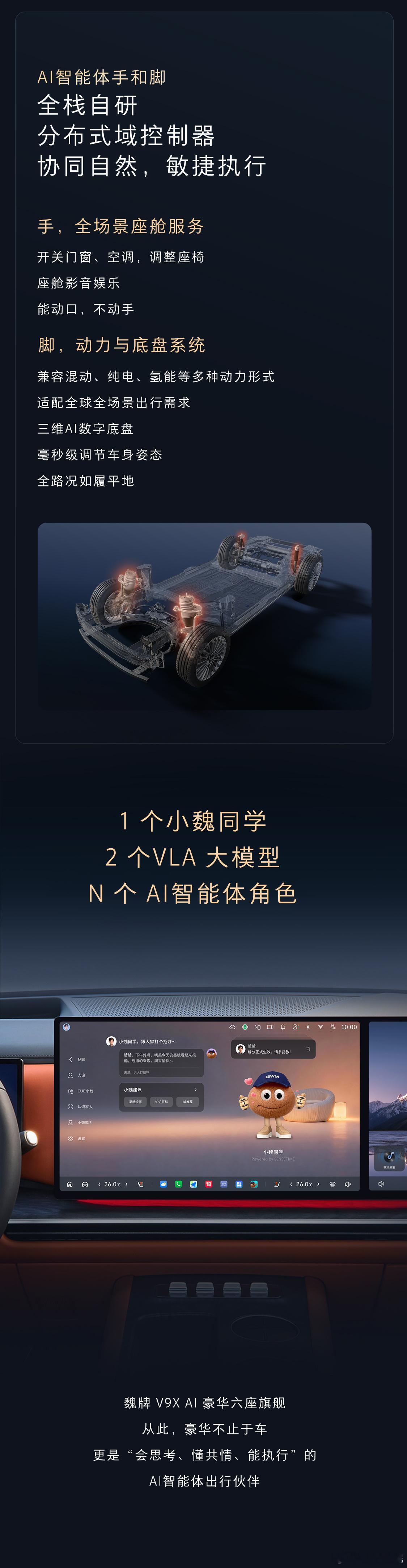 谁坐谁懂!魏牌 V9X 的座舱也太有人情味了吧。它不再是冷冰冰执行指令的机器,而是依托归元 S 平台,凭借OMS 乘员监控 + VLM 视觉语言模型精准认出你、记住你专属坐姿、空调温度、音乐偏好的贴心伙伴。开车通话时依靠打扰度模型自动安静不打扰,感知疲惫时会调暗氛围灯,天冷上车还会通过端云协同仲裁主动开启暖风,从被动等你说话,真正变成主动关心你、懂你的存在。再加上LLM 分层记忆系统,越用越贴合你的习惯,有温度、会思考、懂分寸。魏牌 V9X 搭载的行业首个原生 AI 智能体确实不一样,不靠堆配置拼屏幕,而是从底层理解人的真实需求,直接实现体验上的断层领先,坐一次就被彻底征服。4 月 17 日,归元 S 技术发布会暨魏牌 V9X 预售发布会,一起见证真智能座舱的实力。认人识人是AI智能体的照妖镜魏牌V9X