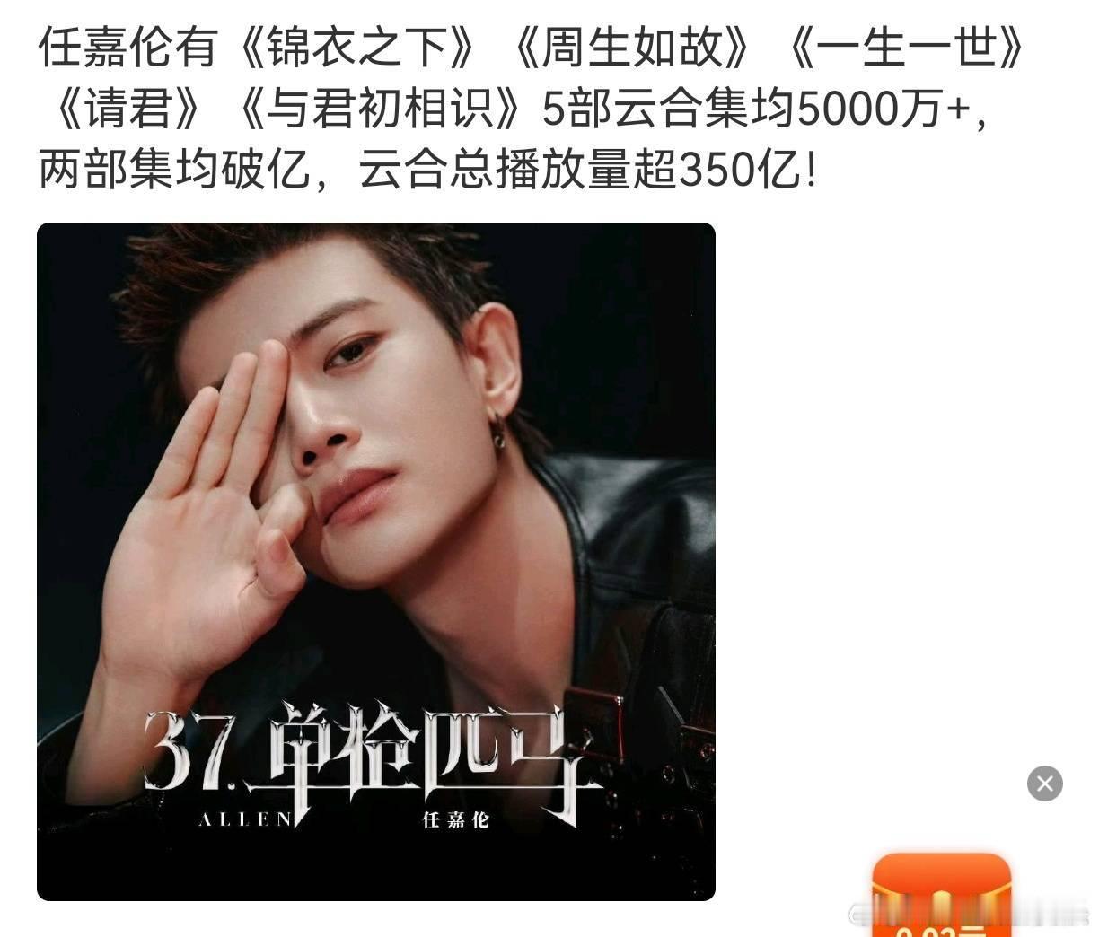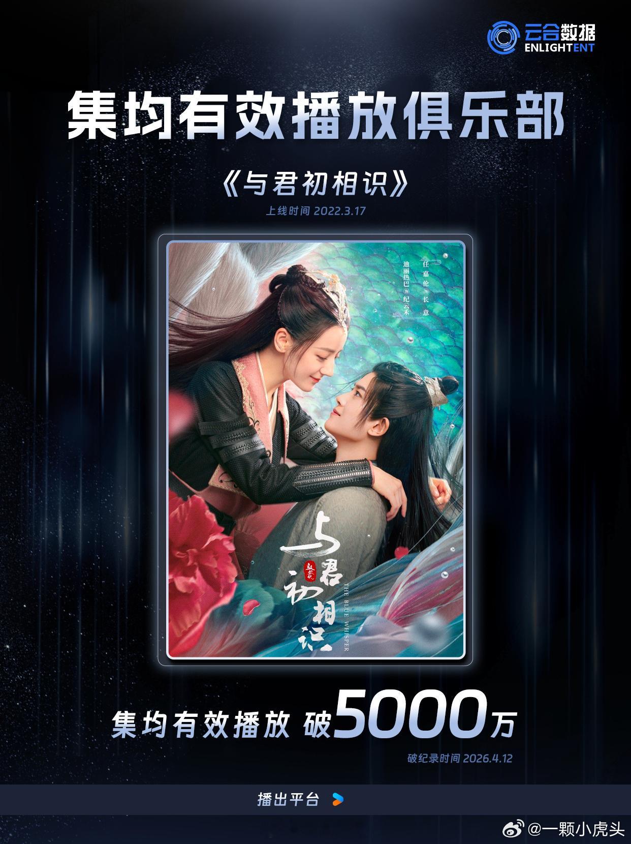 任嘉伦与君初相识云合集均破5000万了👏任嘉伦爆剧太多,已经不知道这是第几部集均高于5千万的剧了。