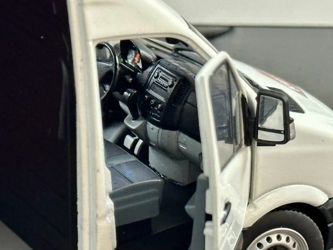 做工上你完全可以当它是模型级的SIKU仕高。因为它用模型标准造车的同时还保持了一定可玩度。像是带方向盘联动的前轮转向(但我这个装反了,方向盘会往反方向转);还有全车5开门,尾门还能像真车一样接近270度打开。很大程度上是因为这个尾门让我买下了这车