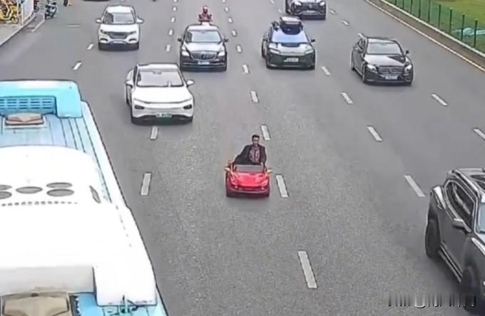 近日,贵阳一男子彻底火出圈,居然开着自家孩子的玩具“敞篷”车上路行驶,这画风也太违和了,妥妥的现实版“返老还童”,妥妥的马路显眼包!
