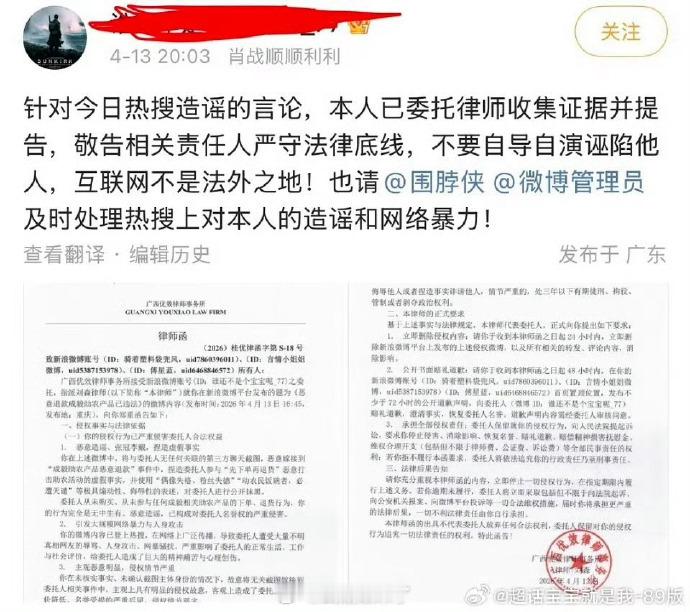 成毅粉丝恶意拼接网友维权其他品牌的博文进行造谣,现已被多位网友依法起诉。支持大家