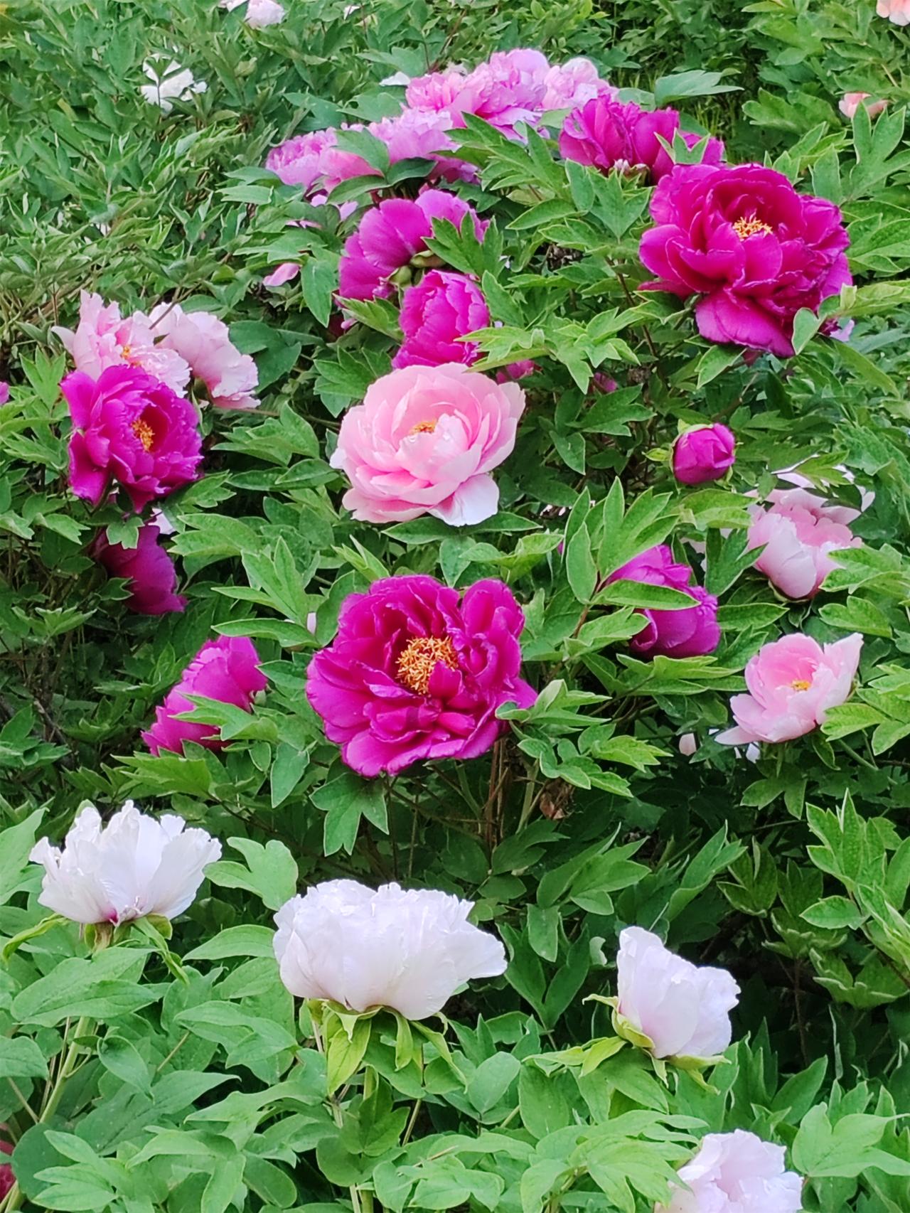 晒图笔记大赛美丽的牡丹园。春暖牡丹放,各色竞争彩。粉红紫白墨,相携吐芬芳。养眼又