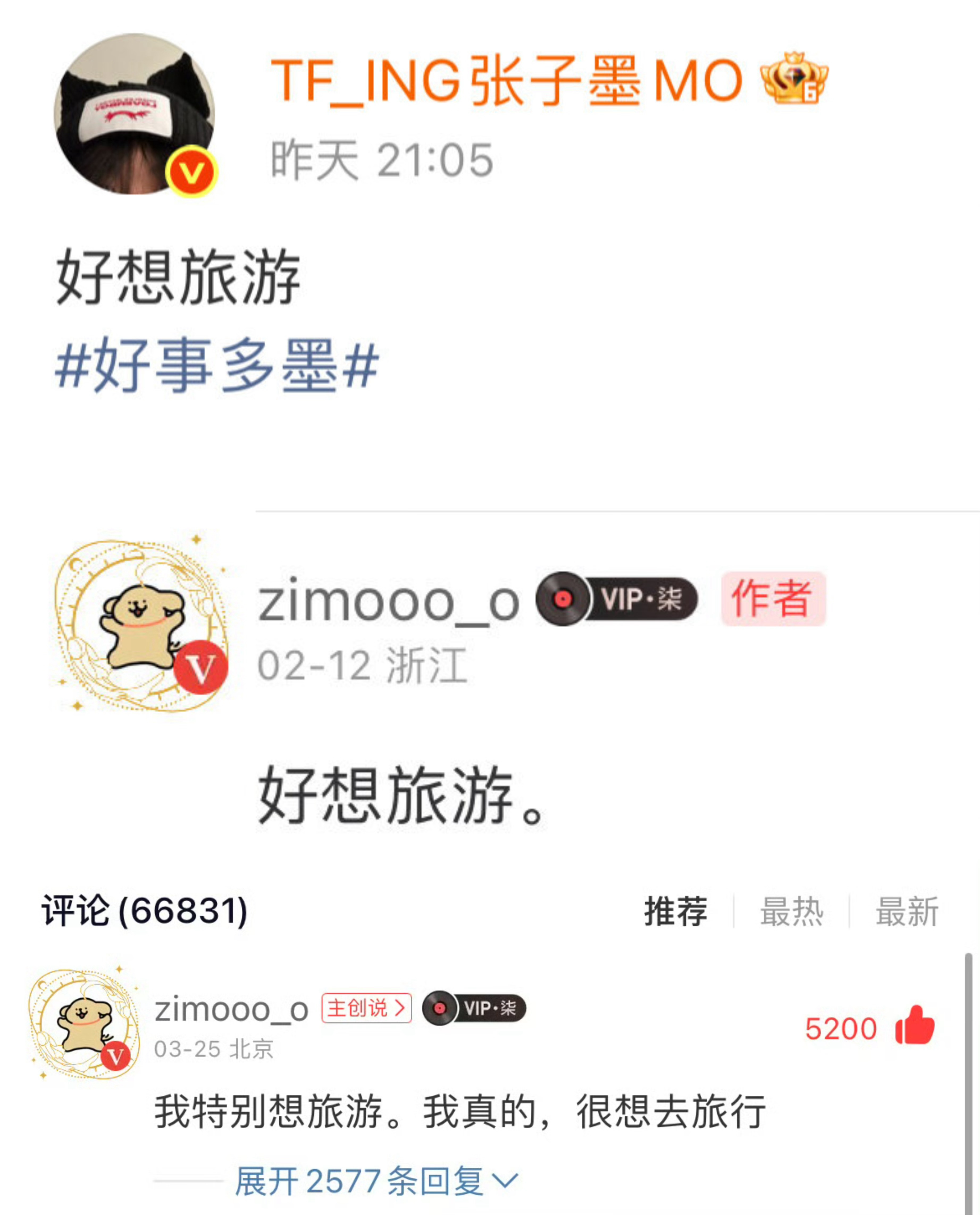 张子墨说好想旅游